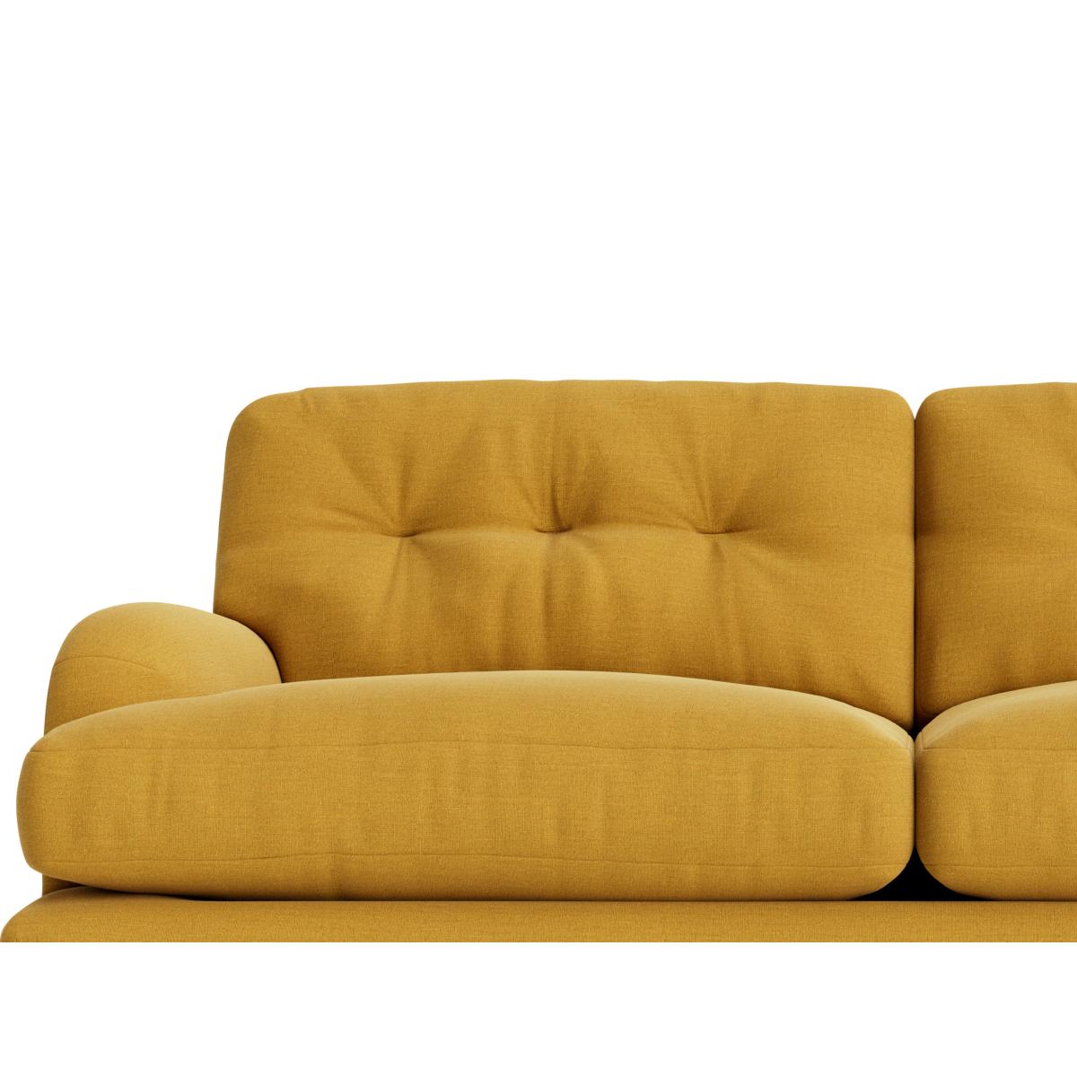 I love the cheerful, retro vibe of this sofa-it's a real statement piece that can brighten up any living space. Its bold yellow hue works well in mid-century, eclectic, or modern interiors, adding a playful burst of colour. When styling, consider pairing it with neutral tones for a more subdued look, or go all-out with colourful accessories and cushions for a lively, inviting atmosphere. Practical tips include balancing its boldness with understated side tables and lighting, and keeping a mix of textures nearby to prevent the space from feeling overpowering. This sofa is perfect for creating a focal point in a room while maintaining a cosy, welcoming feel.