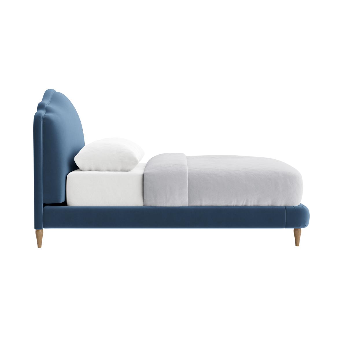 I love this bed’s playful yet sophisticated design, making it a versatile statement piece. The curved headboard adds visual interest without overpowering the space, and the rich blue hue works well in both modern and traditional interiors. It’s especially effective styled in eclectic, contemporary, or even coastal schemes, paired with neutral bedding to let the colour pop. For practical tips, consider layering textured cushions or throws for added cosy appeal, and keep the bedside tables minimal to highlight its bold silhouette. The slender wooden legs also boost its lightness, making it suitable for various room sizes while maintaining a sense of spaciousness.