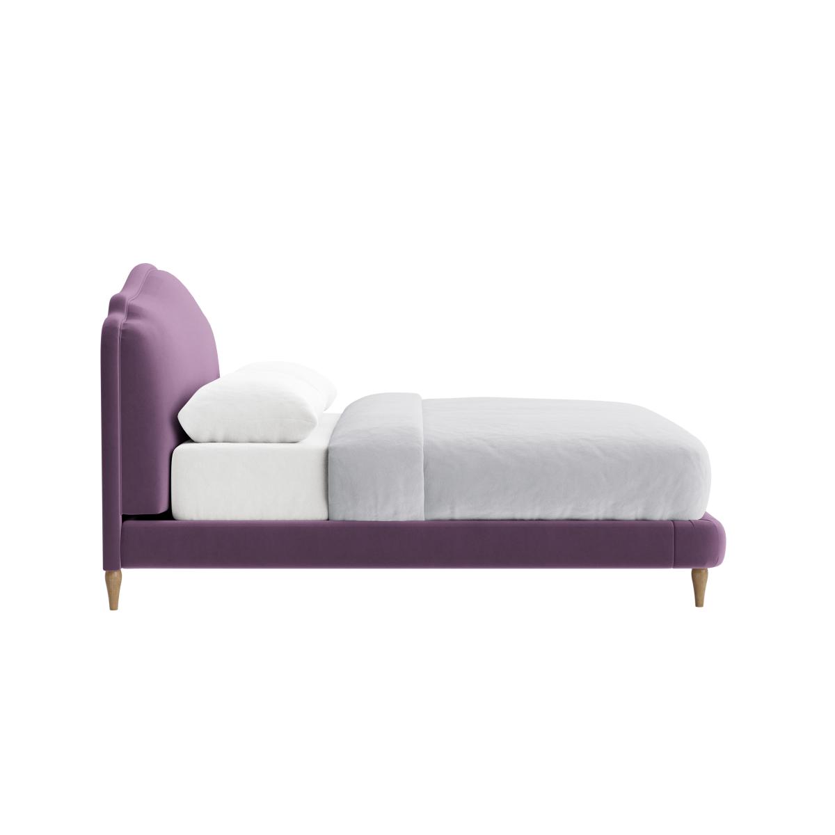 I love this bed for adding a touch of elegance and colour to both modern and eclectic interiors. The soft purple hue offers versatility, pairing well with neutral tones or making a statement against bolder colours. Its gently curved headboard adds a sense of comfort and sophistication, making it a focal point in the bedroom. Practical styling tips include layering with textured bedding and opt for minimal accessories to let the bed stand out. It works particularly well in schemes that embrace both contemporary and vintage elements, thanks to its slightly retro charm paired with sleek wooden legs. Overall, a stylish choice that combines comfort with a dash of personality.