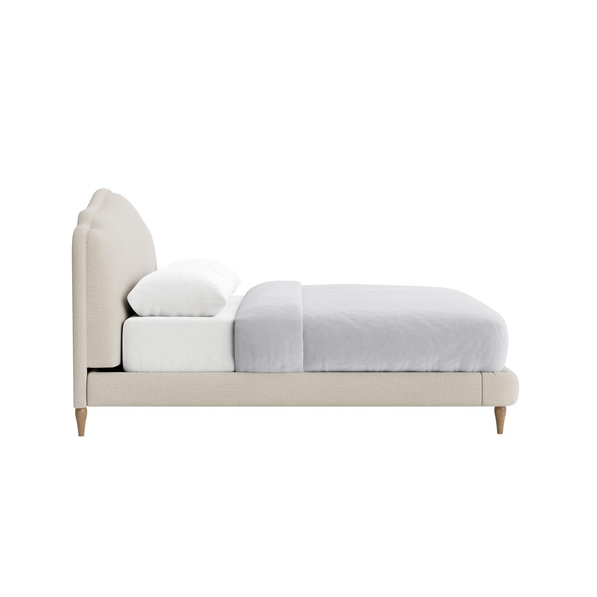 I love the girlie charm of this bed, particularly its soft curves and understated elegance. It works well in both contemporary and classic interiors, adding a cosy yet refined touch to bedrooms. To style around the snuggle-up look, consider layering with textured bedding and offbeat cushions for a relaxed vibe, or keep it minimalist with sleek linens for a more modern aesthetic. Its neutral tone makes it versatile, so it pairs nicely with pastel shades for a light, airy feel or deeper hues for a sophisticated contrast. Practical tip: since it has a clean silhouette, it’s perfect for smaller spaces or rooms where you want the bed to be a calming focal point without overwhelming the room.