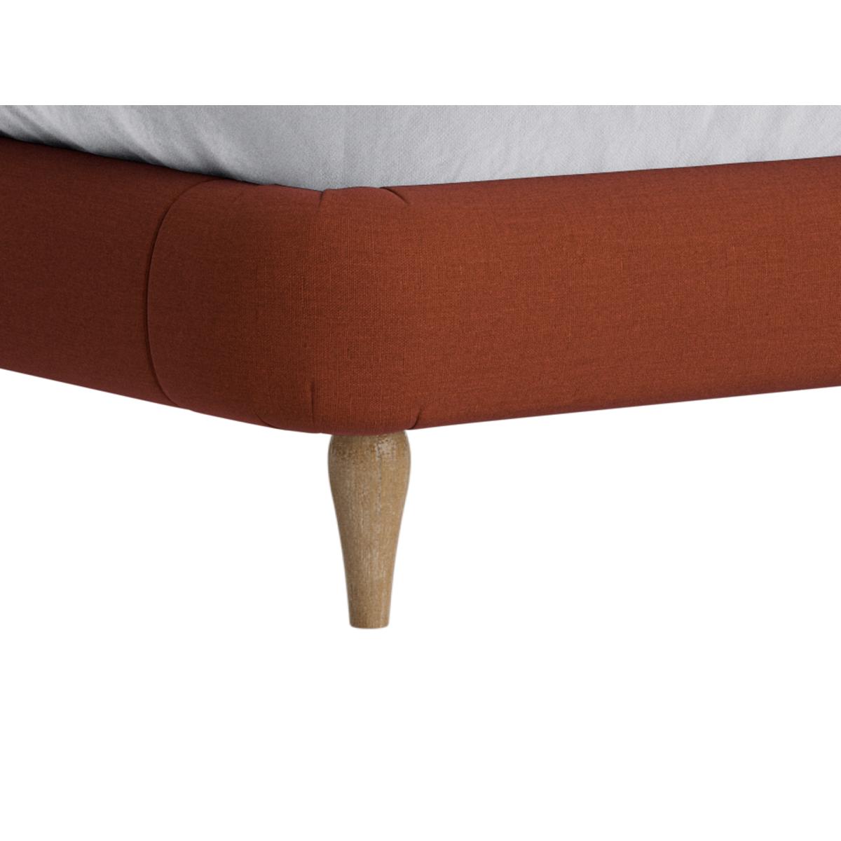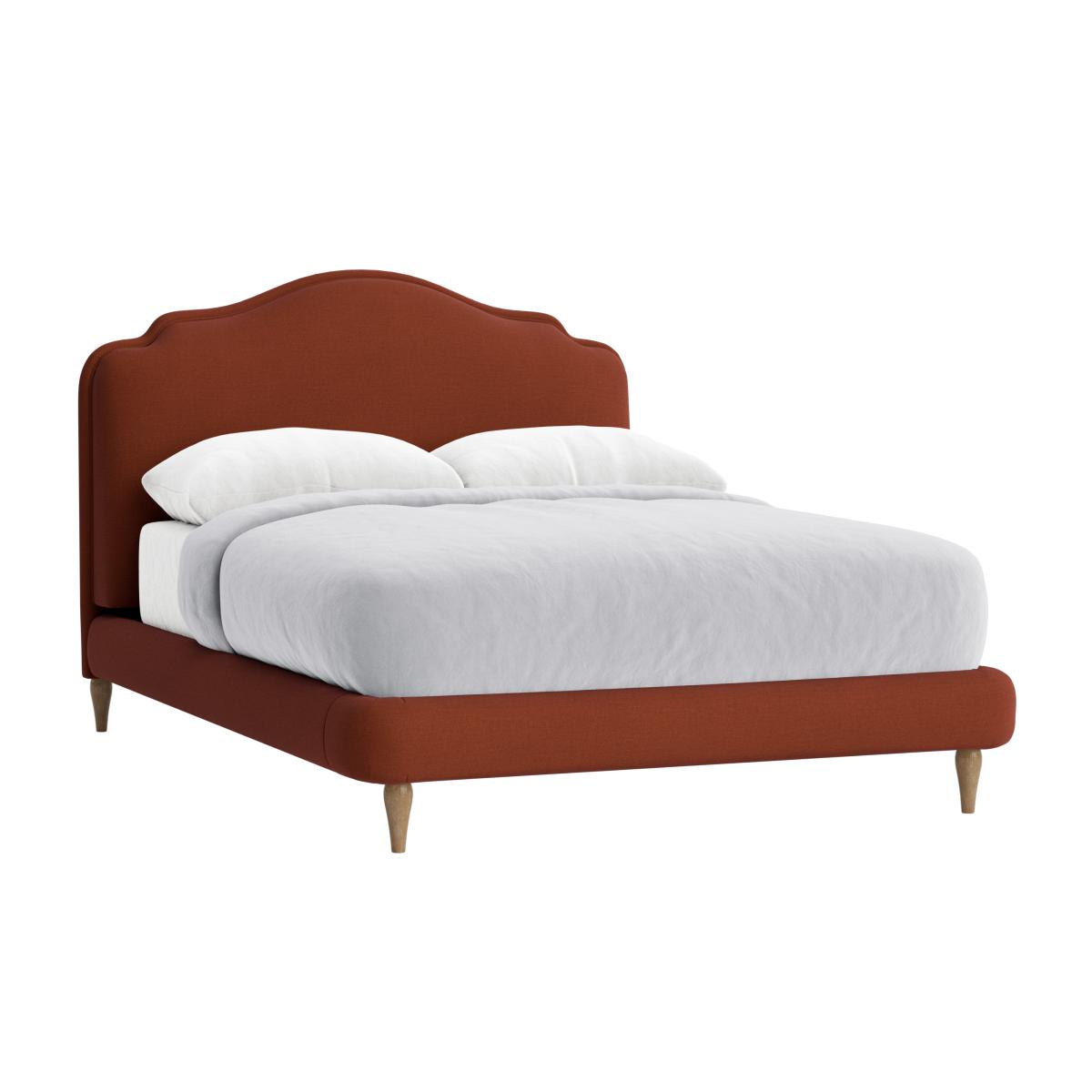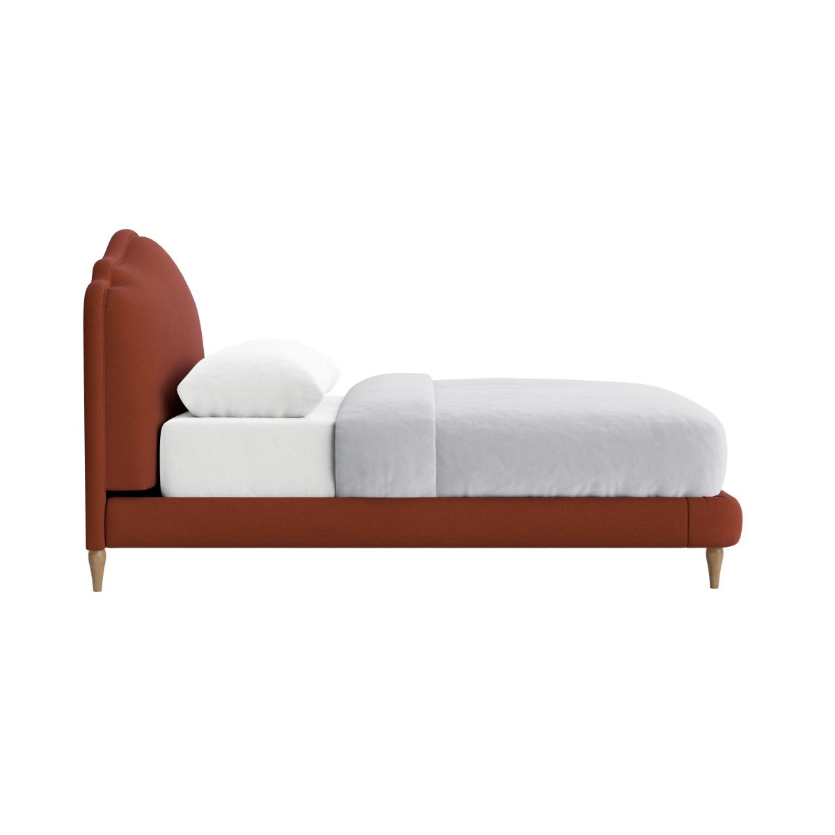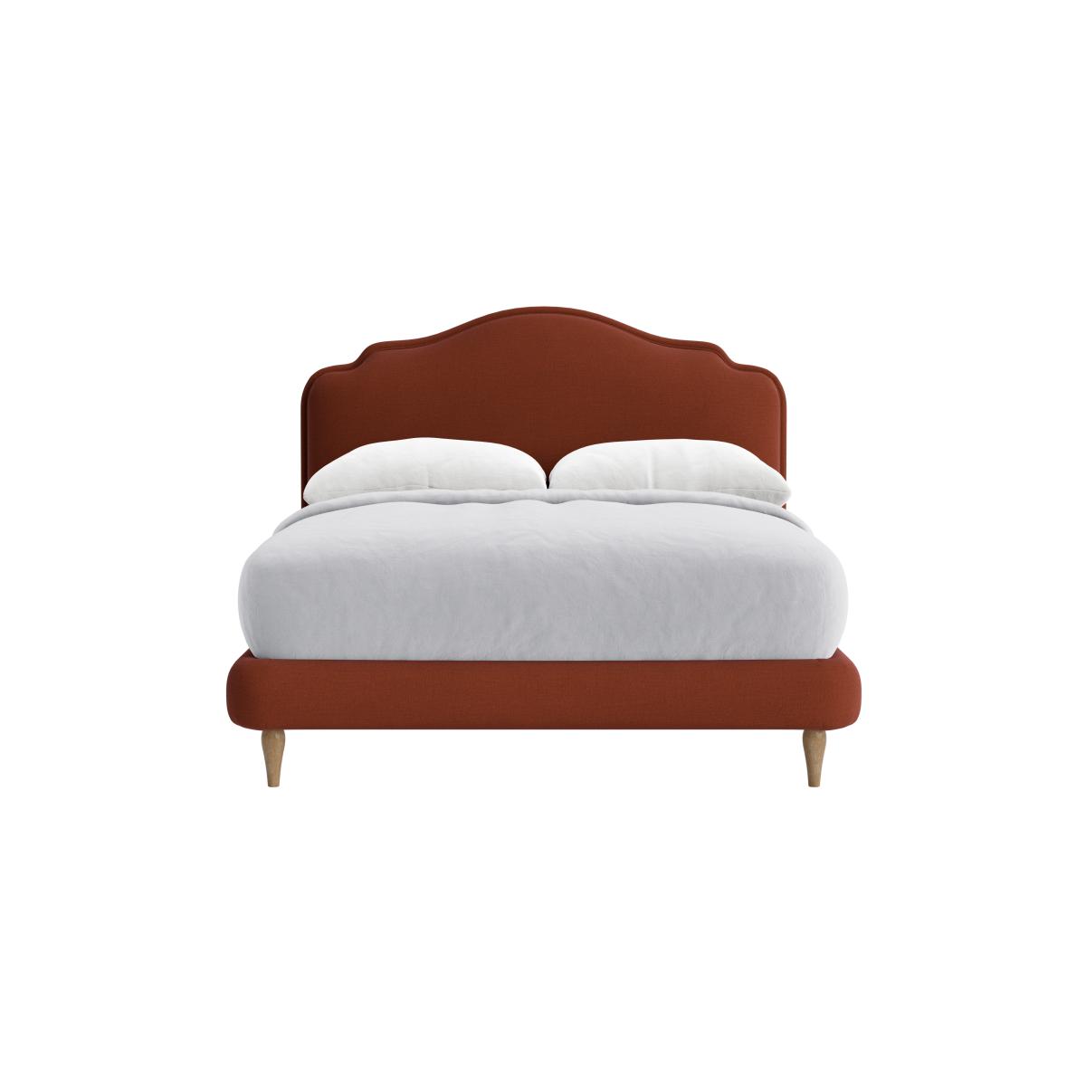 I love this bed frame because of its versatile vintage-inspired silhouette and warm terracotta hue, which can add character to both modern and eclectic interiors. It works particularly well in cosy master bedrooms or guest rooms with neutral or earthy colour schemes, creating a welcoming focal point. For styling tips, consider pairing it with crisp white linens and soft cushions in contrasting textures or colours to enhance its visual appeal. To keep the look balanced, keep accessories minimal; a neutral rug and simple bedside tables will let the bed remain the star of the room. This piece is both stylish and practical, offering a statement without overwhelming the space.
