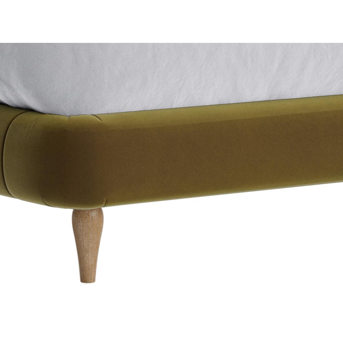 I love this bed frame for its versatile, vintage-inspired design that adds a cosy yet elegant touch to any bedroom. The rich, olive-green upholstery pairs beautifully with both neutral and bold colour schemes, making it a flexible choice for a variety of interiors - from modern minimalism to eclectic boho. When styling around it, consider layering with layered textured bedding, cosy throws, and decorative cushions to enhance its inviting feel. It works particularly well in bedrooms with warm woods or brass accents, but can also be styled in cooler-toned spaces for a striking contrast. Practical tips include keeping the surrounding decor simple to let the bed be a statement piece, and using bedside tables and lighting to create a balanced, inviting space.