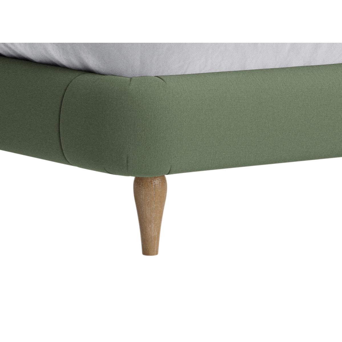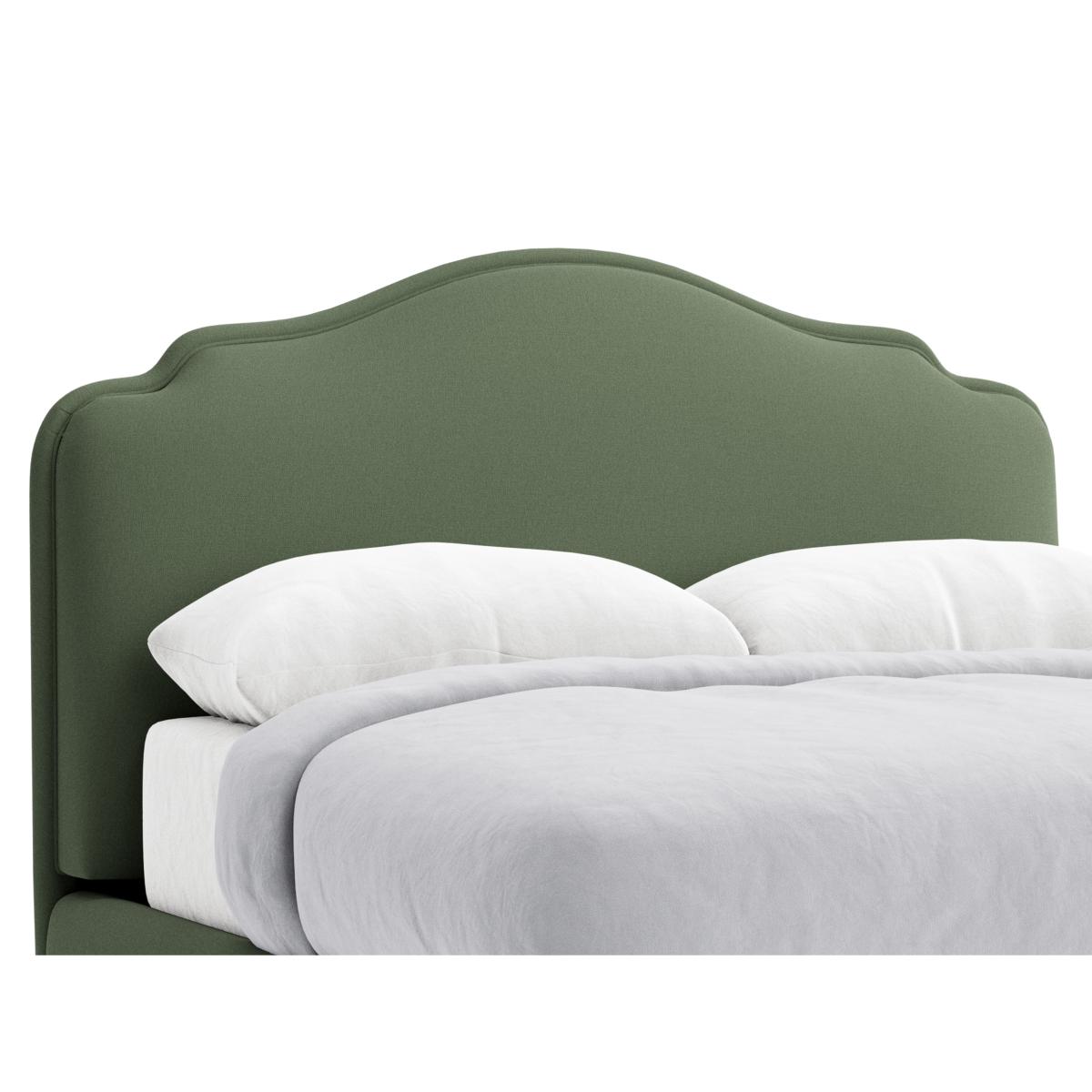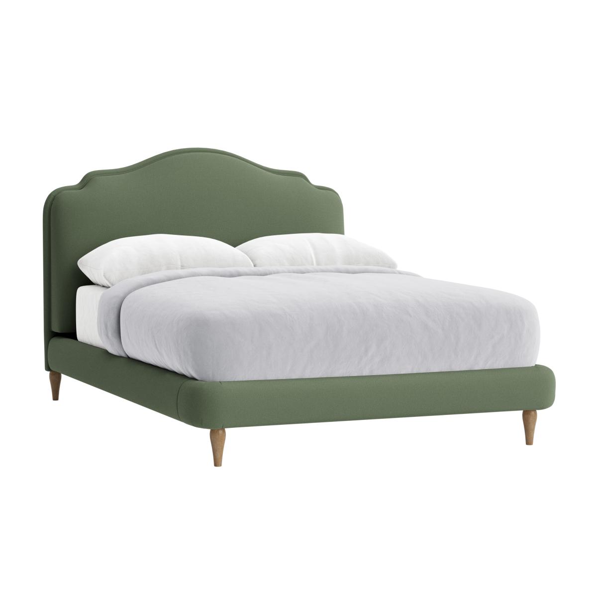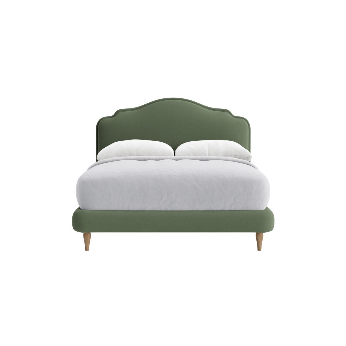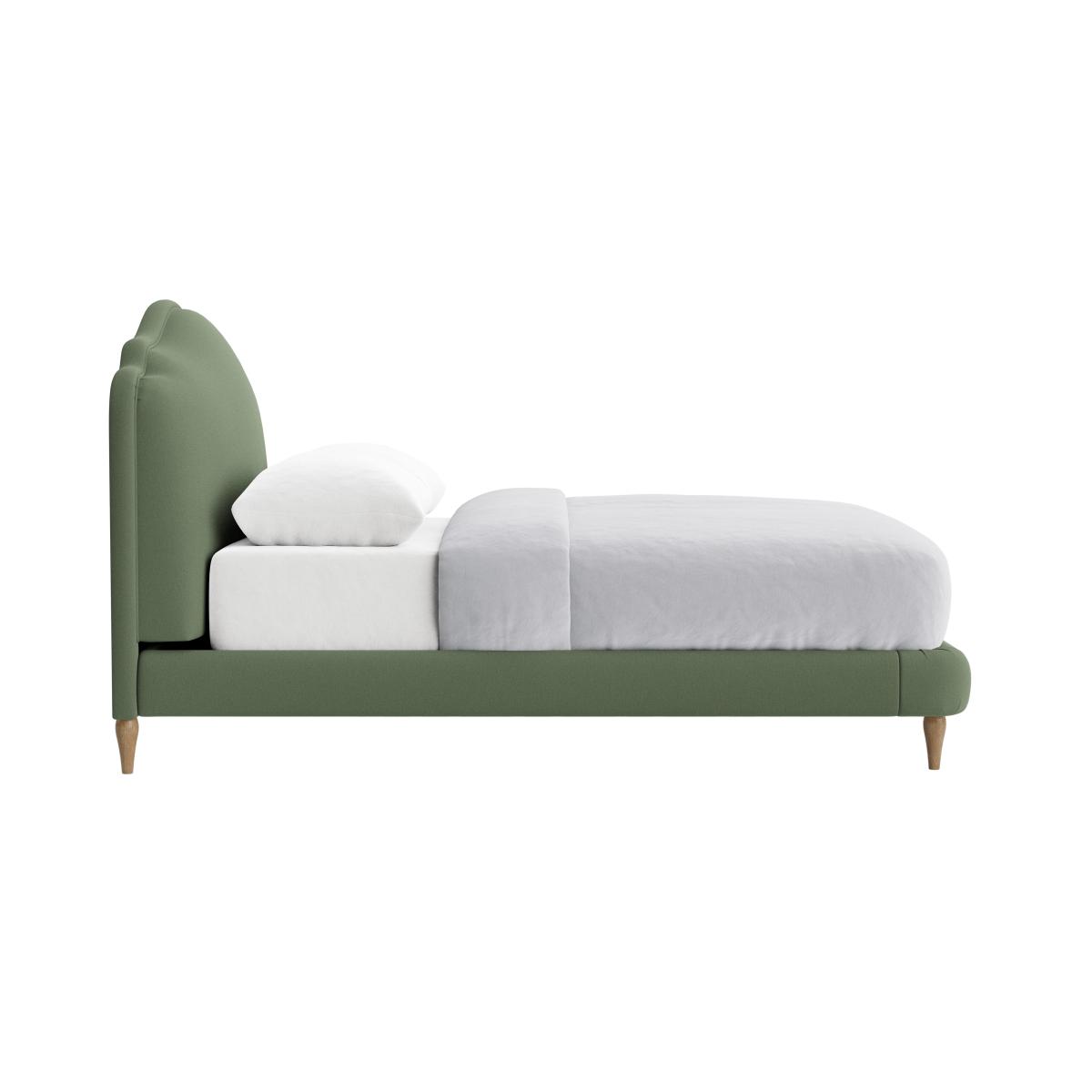 I love the whimsical shape of this bed, which adds a touch of charm while remaining versatile. It's particularly well-suited to cosy, vintage-inspired interiors or modern schemes with a nod to retro styles. The soft olive colour is quite adaptable, pairing well with neutral colour palettes or richer jewel tones for a more opulent look. For styling tips, consider layering with textured bedding and patterned cushions to add depth. Placing the bed against a simple wall allows it to be the statement piece, while minimalist bedside tables and understated lighting can keep the overall look clean and balanced. This piece works equally well in a quiet bedroom retreat or a more eclectic, colourful space, making it a flexible choice for many schemes.