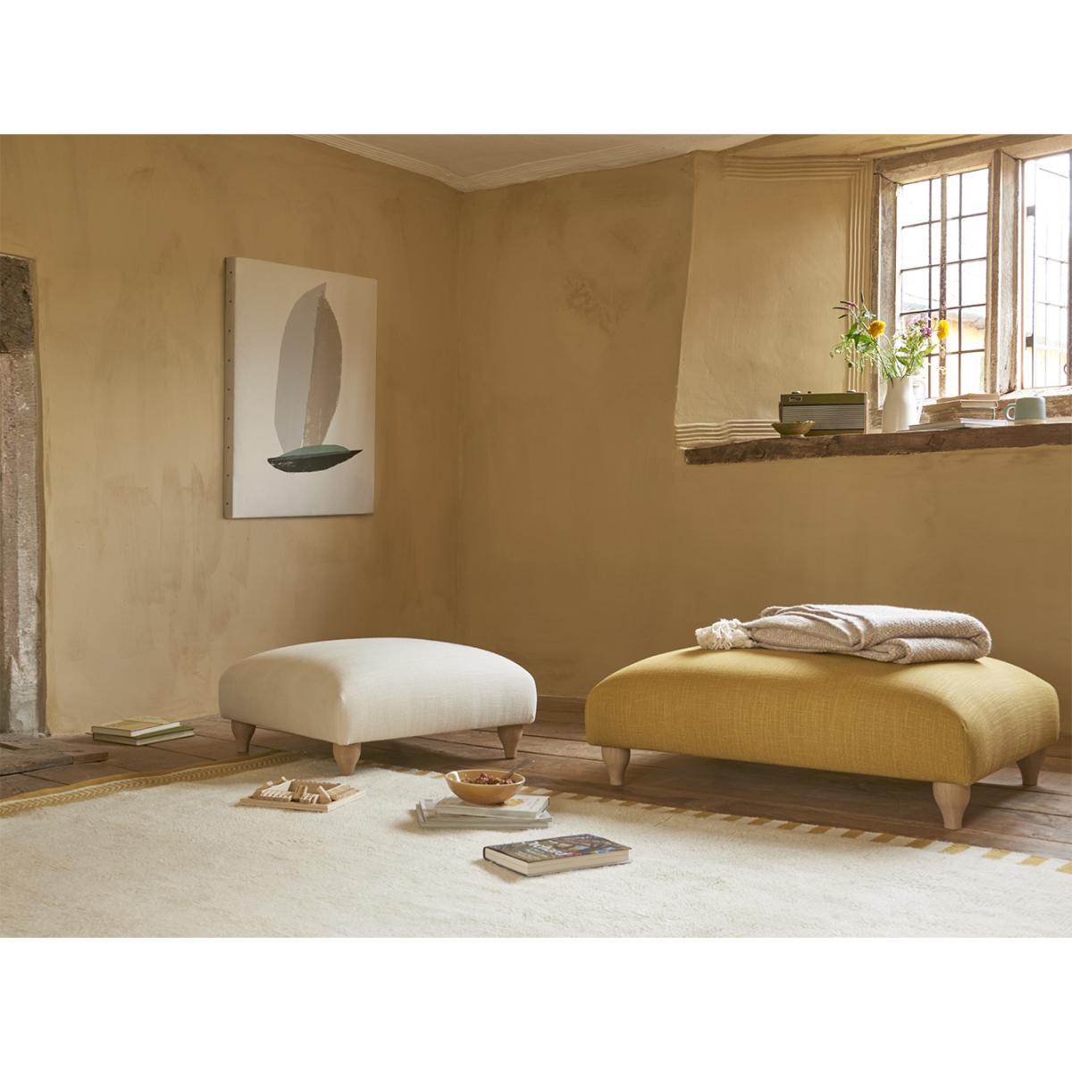 I love this little footstool because of its versatile, understated design-it works well in both modern and traditional interiors. Its neutral colour and simple shape make it easy to style across different rooms, whether as a cosy extra seat in a living space or as a chic footrest in front of a sofa. Practical styling tips include pairing it with other neutral furnishings for a layered, calming look, or adding colourful cushions or throws on top for a pop of personality. It also works beautifully tucked under a window or in a corner when not in use, making it a flexible addition to any room.