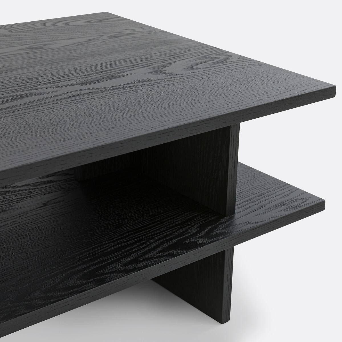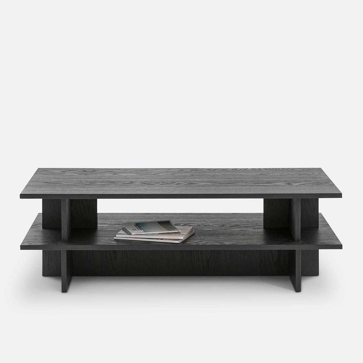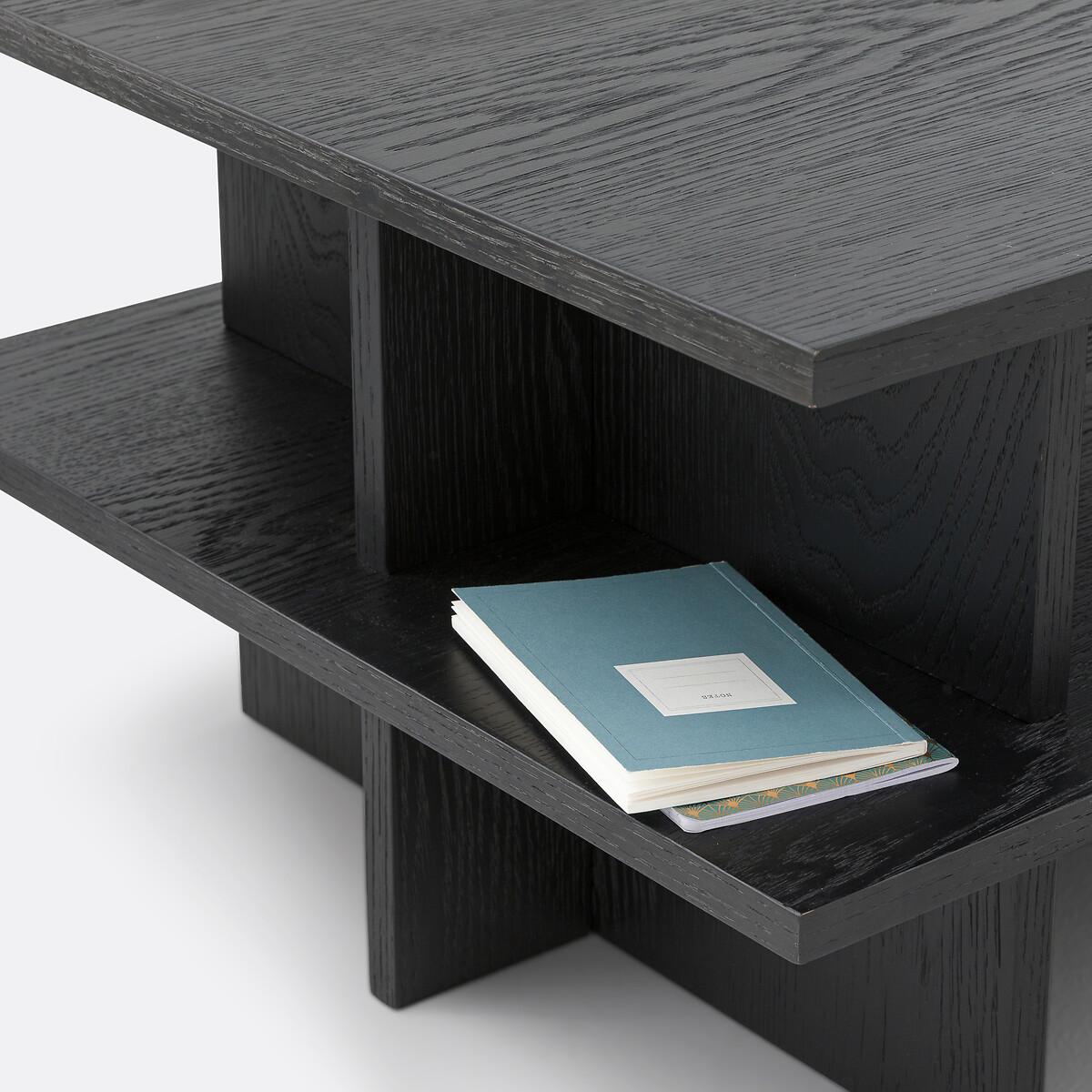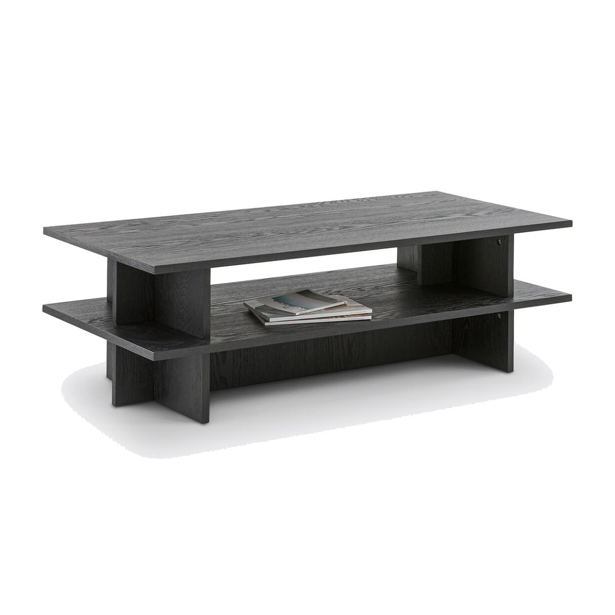 Graphic and functional. The Sugi table plays with style, replicating the look of two tables, one on top of the other. Practical for storing magazines, remote controls, books... and saving space. Created by La Redoute Interiors. Product Details • Structure and tops in black oak veneered MDF, matt nitrocellulose varnish finish. Care Advice • To protect your coffee table, consider trivets, coasters and placemats. Dimensions. Overall • Width: 60cm • Height: 38cm • Length: 120cm • Weight: 27.5kg. Usable dimensions • Between the two levels: L88 x H17cmDelivery:. Assembly required. Available for home delivery. Note! Please check that all access points are large enough to accommodate your delivery (doors, stairs, lifts). Parcel dimensions and weight1 parcel • L129 x H11.5 x D70cm. 32kg