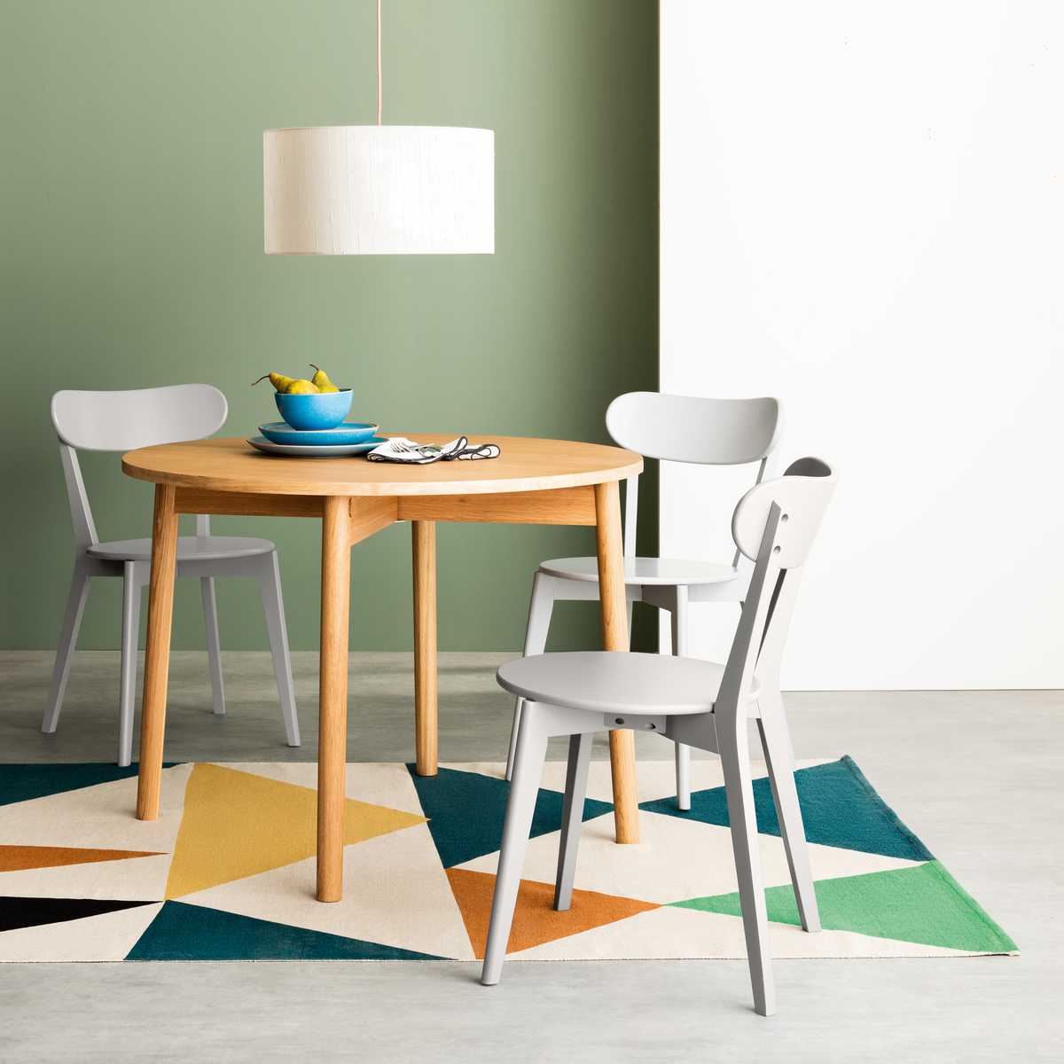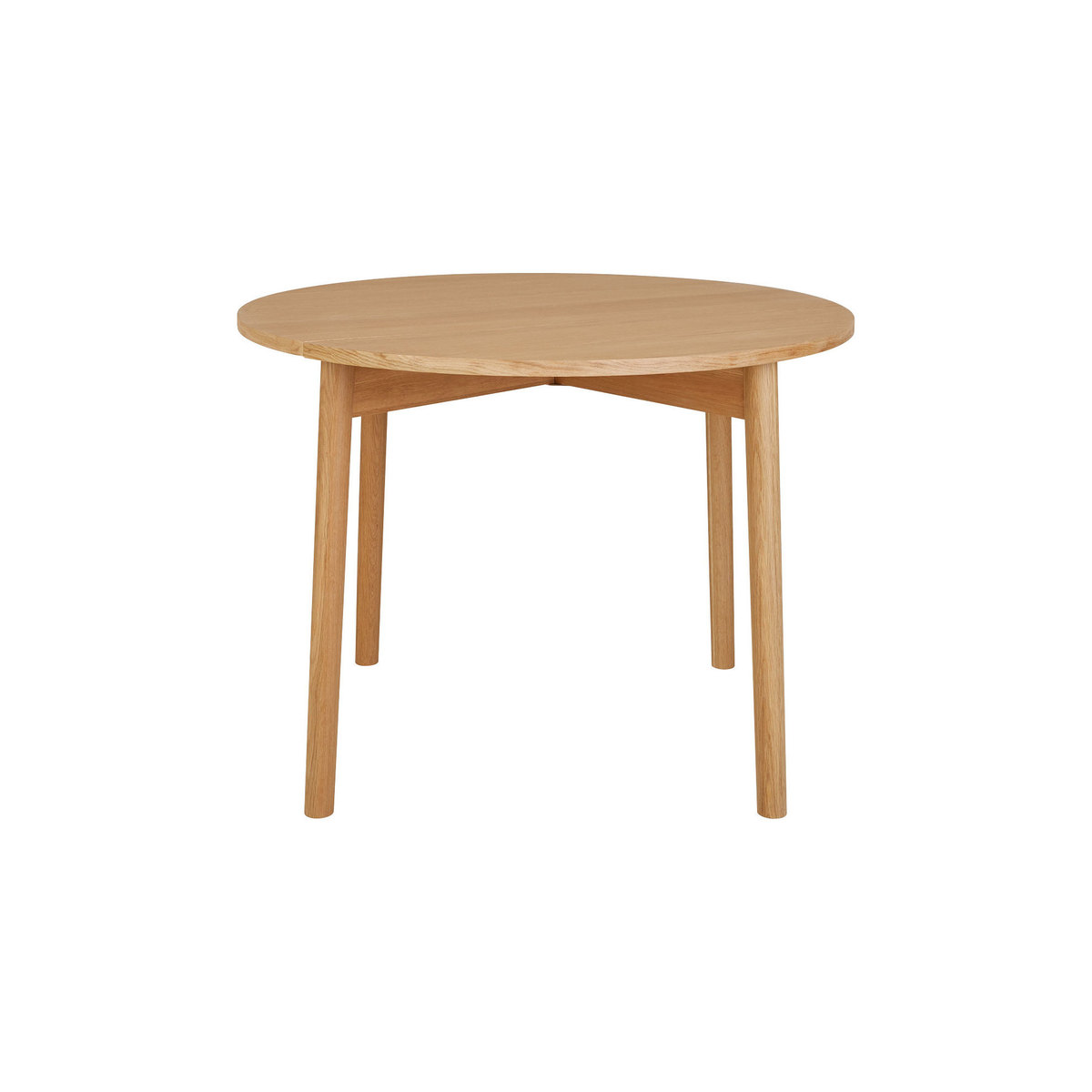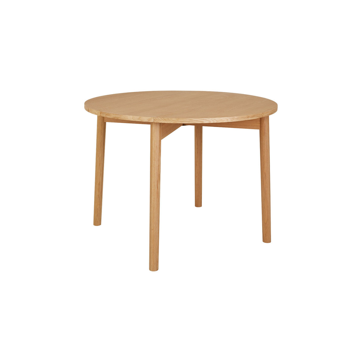 Perfect for small spaces, the compact Suki oak folding round dining table is made from solid oak and oak veneer. The dining table can be used with one or both of its leaves raised and can be compactly stored away when not in use. Created in the Habitat design studio, the table is also available in white and a black.