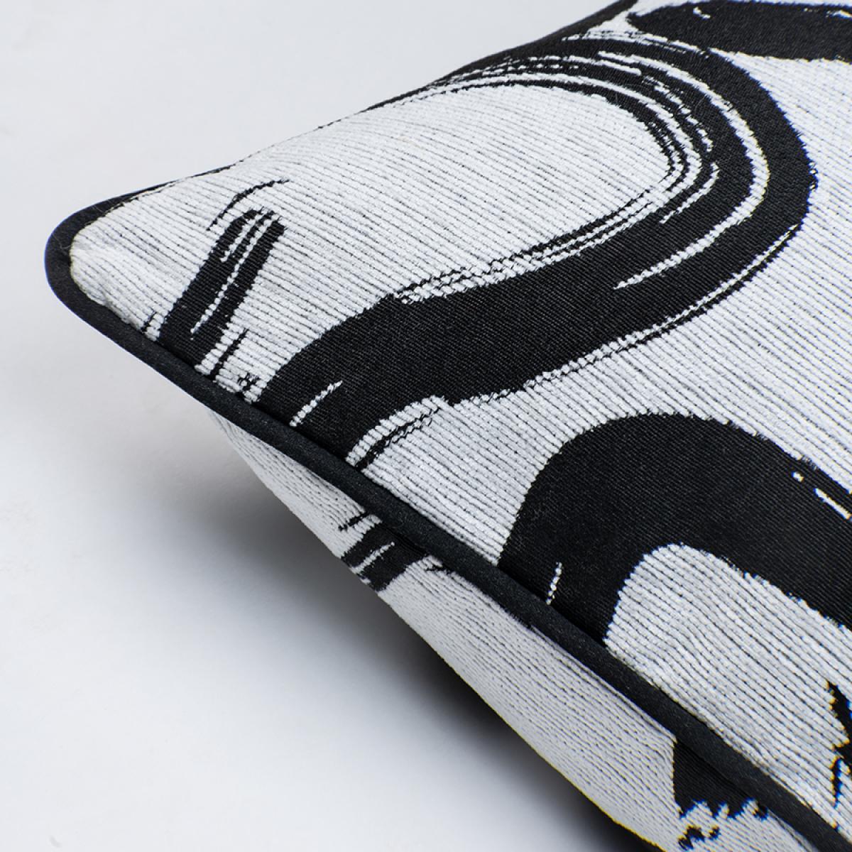 This square cushion is a chic addition that brings a modern edge to any interior. I love the bold, abstract black and white design, which makes it versatile enough to complement both minimalist and contemporary spaces. It's perfect for adding visual interest to a neutral sofa or bed, or used in a layered arrangement with other textured cushions for more depth. Practical styling tips include pairing it with solid, muted tones to make the pattern pop, or mixing it with other black and white accessories for cohesive look. Its simple shape and striking design make it a versatile piece that can elevate everyday décor with minimal effort.