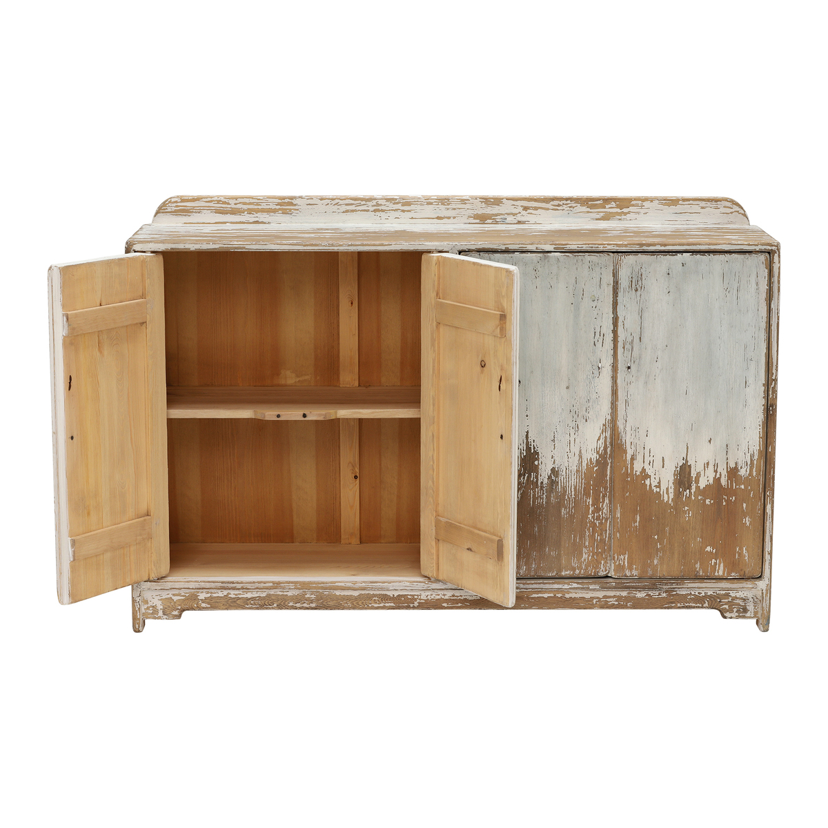 I love this sideboard for its rustic, distressed finish that adds character and warmth to a room. It works particularly well in interiors with a vintage, shabby chic, or bohemian aesthetic, but can also serve as a contrasting piece in modern or industrial settings. Practical styling tips include layering with decorative trays, plants, or ceramics on top, while using its ample storage to keep clutter out of sight. Its muted tones make it versatile to pair with a variety of colour palettes, and it makes a great focal point in a living room, dining area, or even a hallway. The worn finish not only adds a sense of history but also helps conceal minor scratches or marks over time, making it an excellent investment for both style and durability.