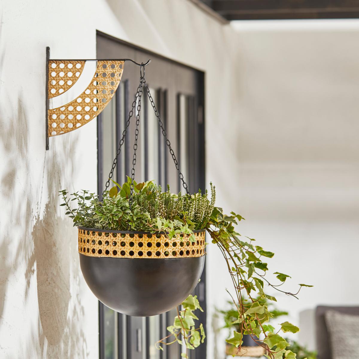 Sulu Rattan Effect Hanging Basket with Bracket MultiColoured