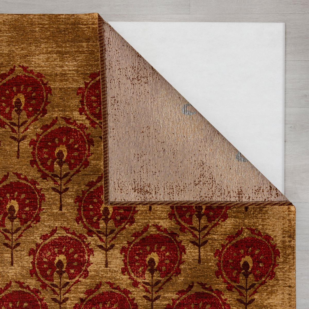 This Suman Chenille Flatweave Rug in gold and red is a great choice for adding warmth and a pop of colour to both contemporary and traditional interiors. I love its versatile blend of rich tones and textured finish, which can bring a cosy, inviting feel to living rooms or bedrooms. It works particularly well layered over neutral carpets or hardwood floors, offering a quick way to anchor a seating area. When styling, consider pairing it with earthy tones or muted textiles to let the rug’s vibrant shades stand out. Practical tips include choosing furniture with simple lines to avoid clashing with the bold pattern, and using minimal accessories so the rug remains a focal point. This piece is perfect for adding depth and personality, especially in spaces where you want to make a subtle statement.
