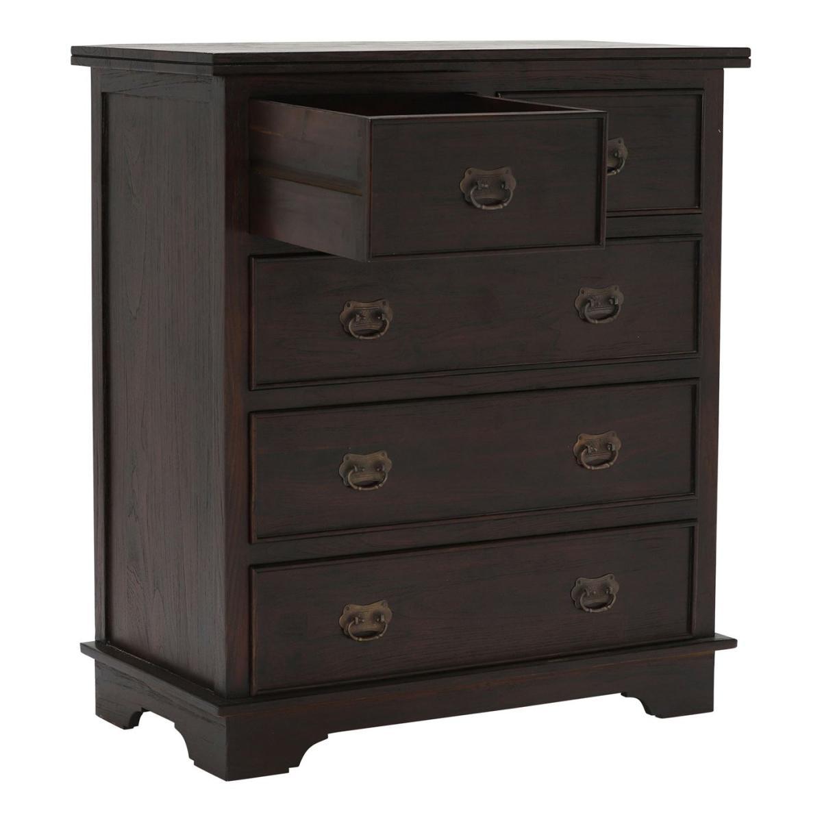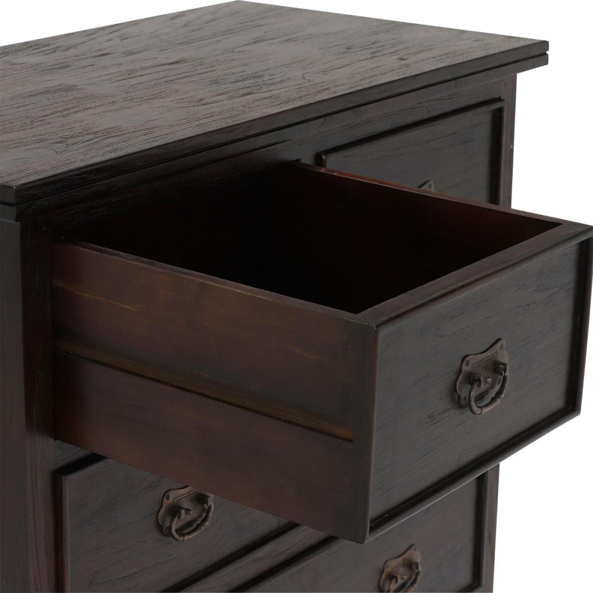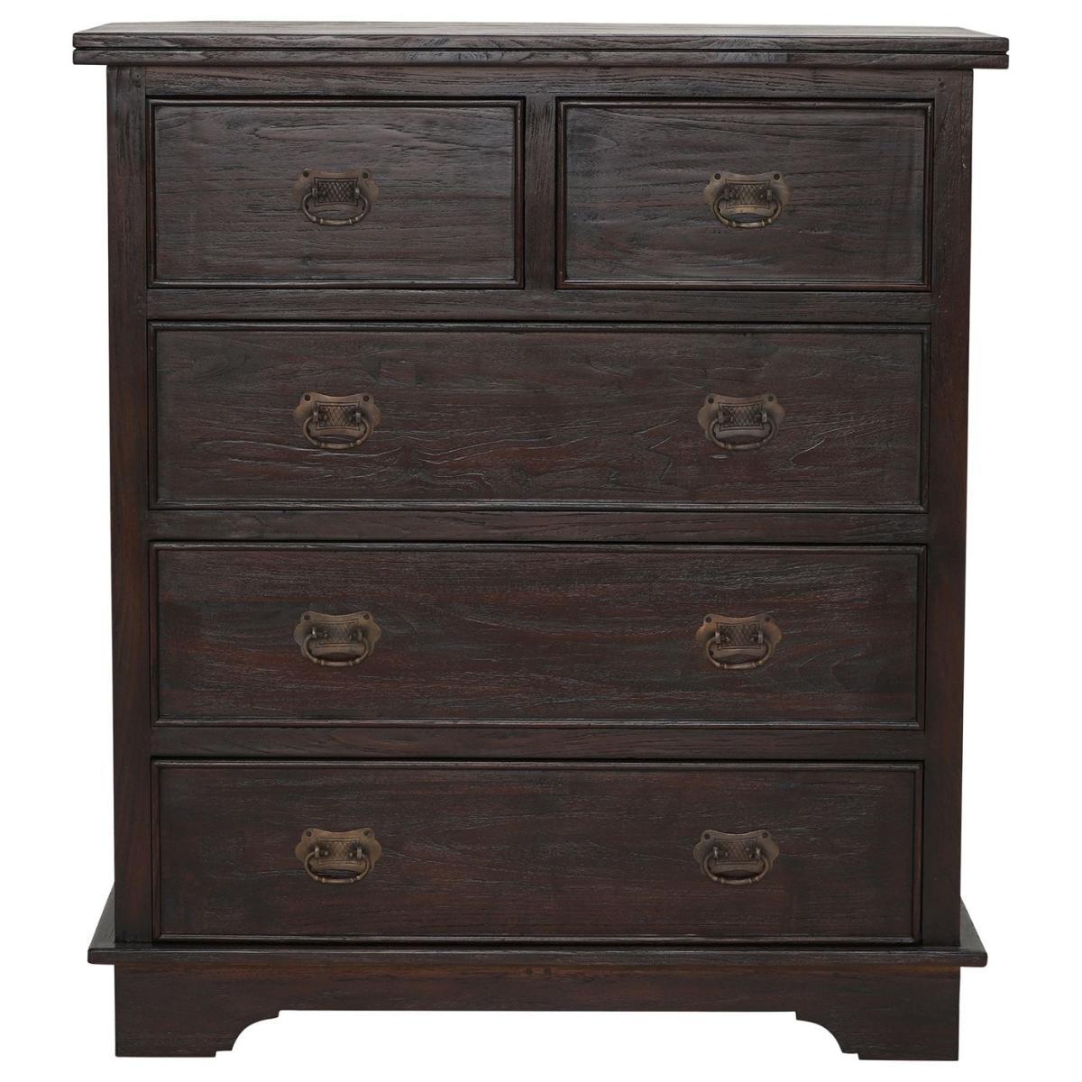 Design. An exquisite set of drawers with rich dark hues that compliment a range of interior settings. The Sumatra 5 Drawer Chest is a solid piece providing optimal storage for your bedroom or living space. A hand carved keraton piece which means that no two items are the same, the Sumatra Chest has authentic natural wood grains that are unique. Place our Textured Table Lamp on top and a couple of your favourite books for a homely finish.