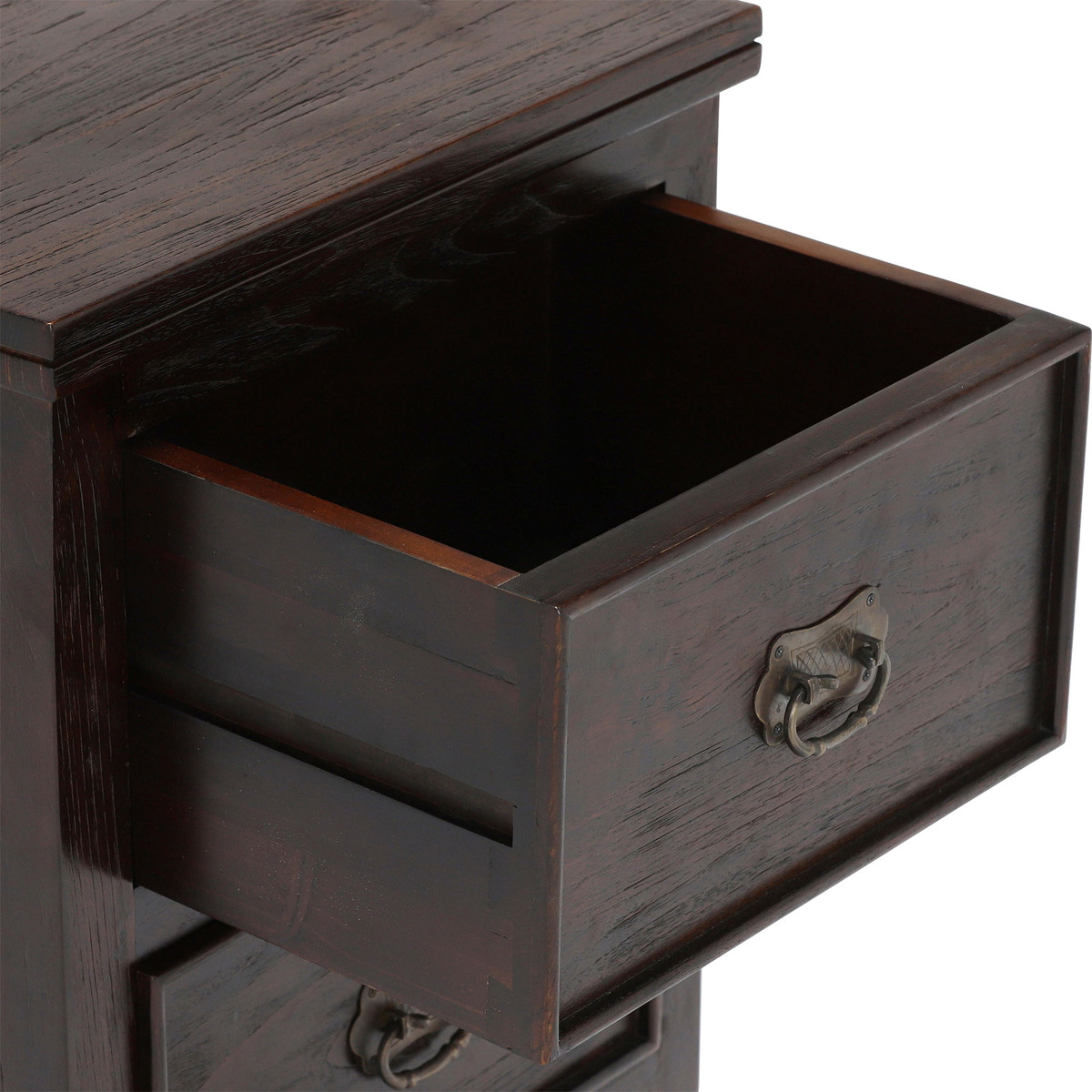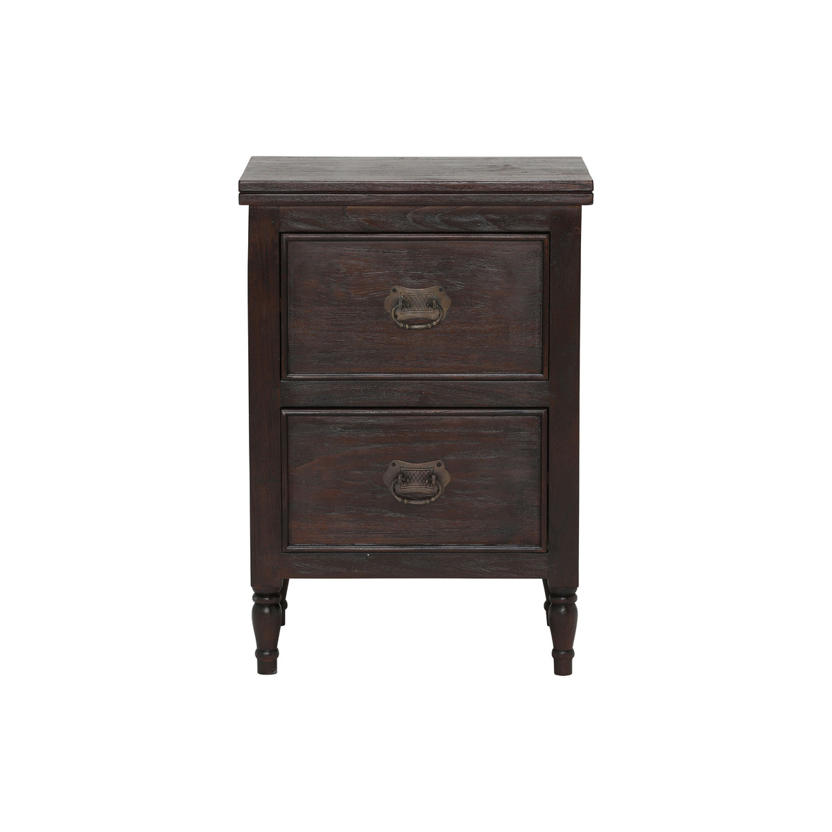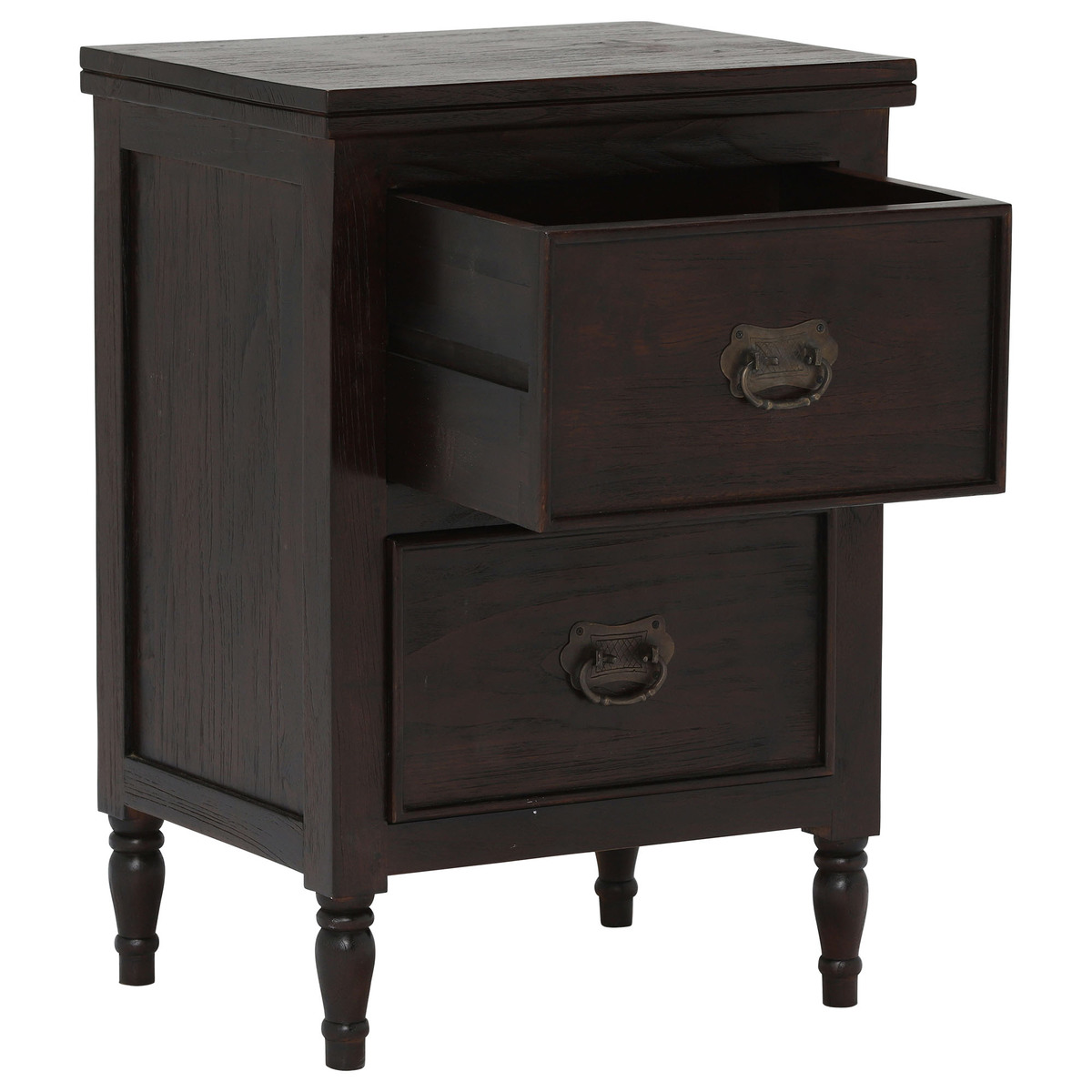 I love this bedside table for its rich, dark wood finish and classic silhouette-it adds warmth and sophistication to a variety of interiors. It's particularly versatile in traditional, vintage, or industrial spaces, but can also work well in eclectic or modern settings when styled with contrasting textures. Practical styling tips include pairing it with a simple lamp or vintage accessories to highlight its character. Keep clutter to a minimum and consider layering with a textured tray or a small plant to create visual interest without overwhelming its robust presence. Its compact size makes it perfect for smaller bedrooms or spaces where you want a durable, timeless piece with a sense of craftsmanship.