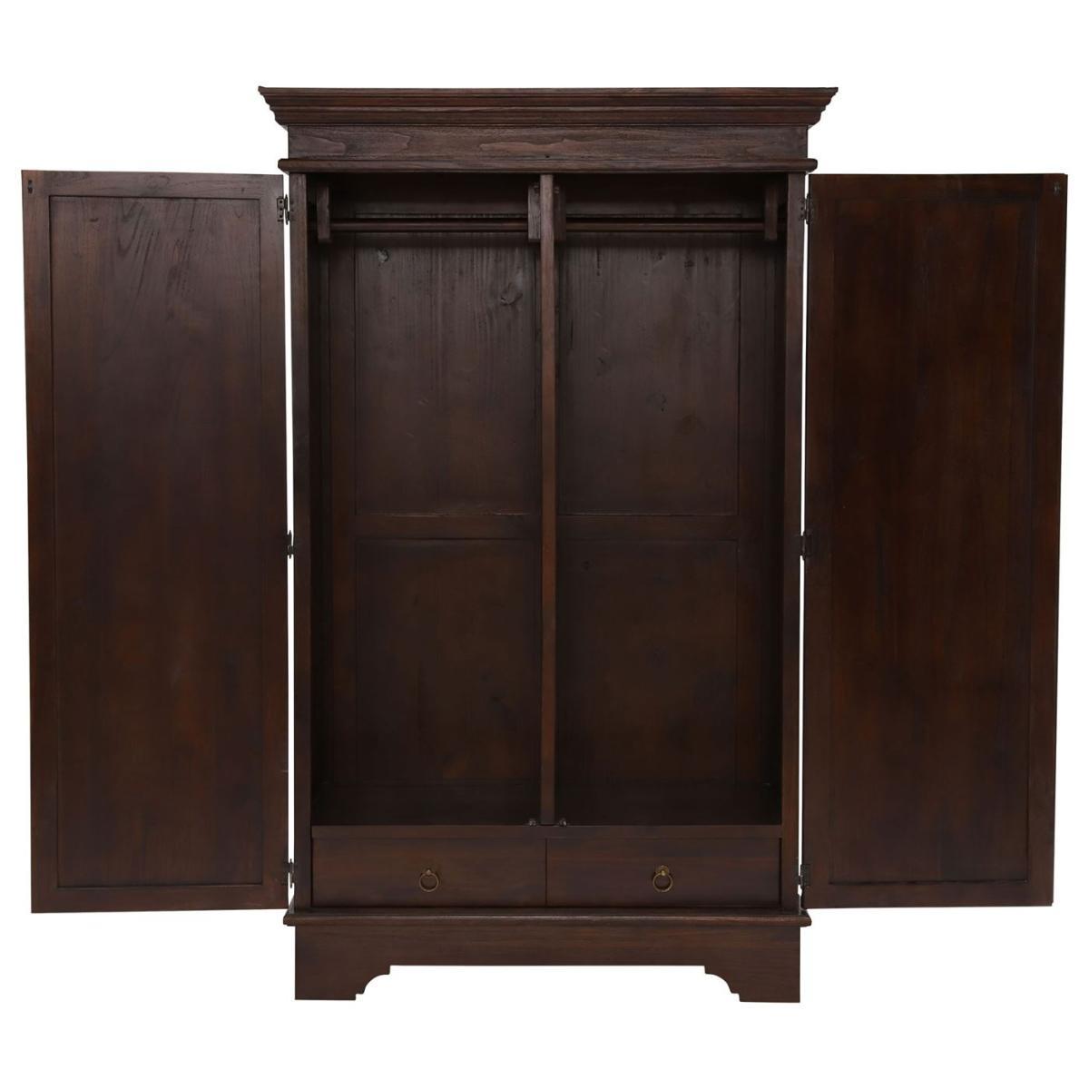 Design. The Sumatra Wardrobe is a hand-crafted piece carved from solid teak and finished with antique brass hardware. Providing timeless design that will age beautifully in your modern or traditional space, the rich hues, lustrous brown finish, and natural grains are an exquisite design feature and will be a focal point in your bedroom. Offering plenty of hanging space and an internal draw storage system, the stylish Sumatra Wardrobe will incorporate a feel of eastern inspired design into your home.