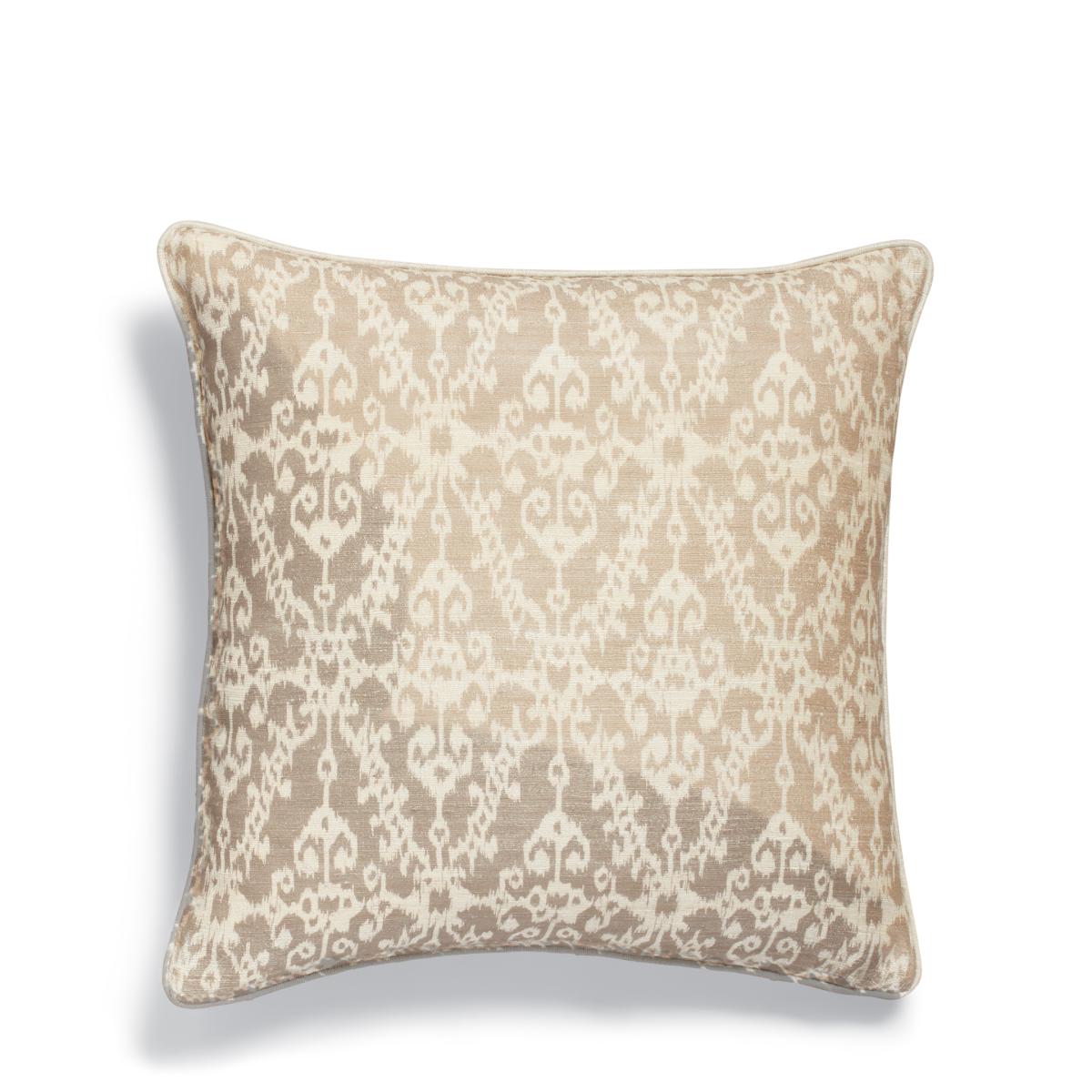 Add to your cushion collection with the ornately patterned Sumba Cover, handwoven from natural tasar silk yarn. The material has been cultivated in four states in India for several centuries. It is hand-spun, then block-printed with a hand-dyeing technique, all of which makes each piece unique. The cover is finished with a cotton lining.