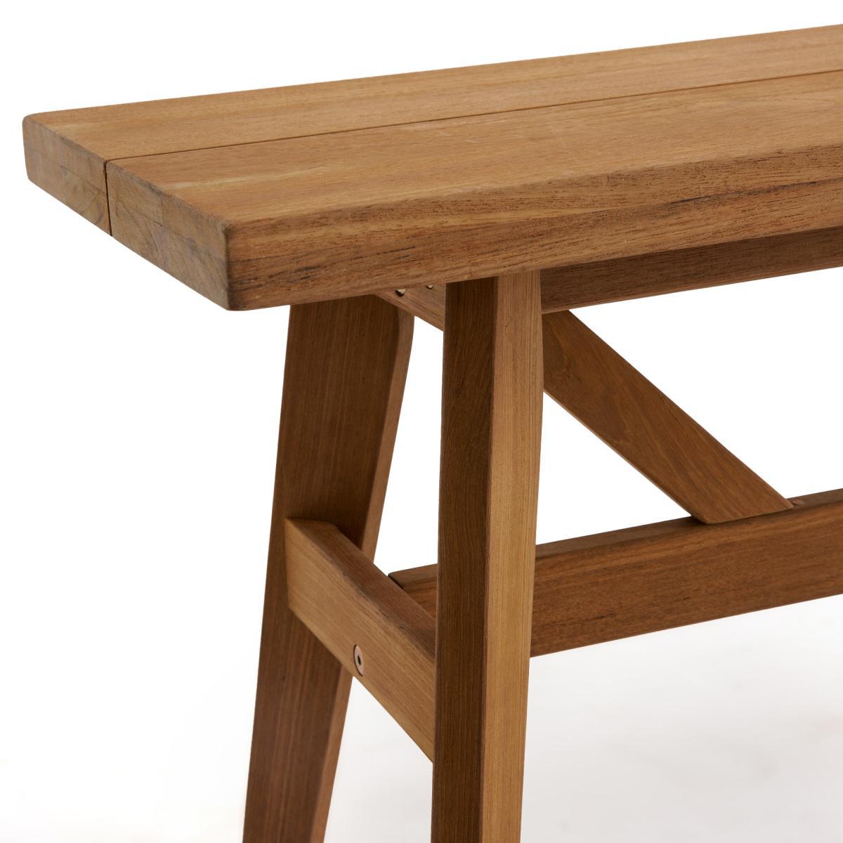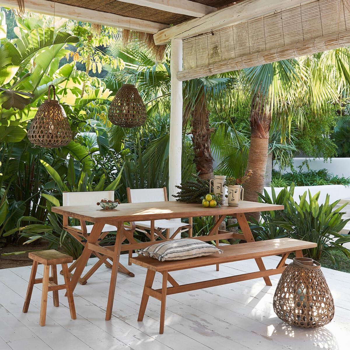 Made using eco-responsible materials, this Sumba garden bench is FSC* certified. Designed to complement the Sumba table available on the site, it is solid teak, which guarantees natural weather resistance with a beautiful finish. Product Details:. Solid teak Additional information:Solid teak is ideal for outdoor use. It is naturally impregnated with oil which ensures its durability and resistance to the elements, and also protects it from insects and fungi.*FSC wood is certified by the Forest Stewardship Council and guarantees that the forest is sustainably managed, that the wood is legal and traceable, that it supports biodiversity and that it respects local communities. Dimensions:. L170 x H46 x D34 cm. Dimensions and weight of parcel:. L176 x H39 x D19 cm, 16 kg. Delivery: Your Sumba bench is sold for self-assembly. It will be delivered to your door!Note! Please check that all access points are large enough to accommodate your delivery (doors, stairs, lifts).