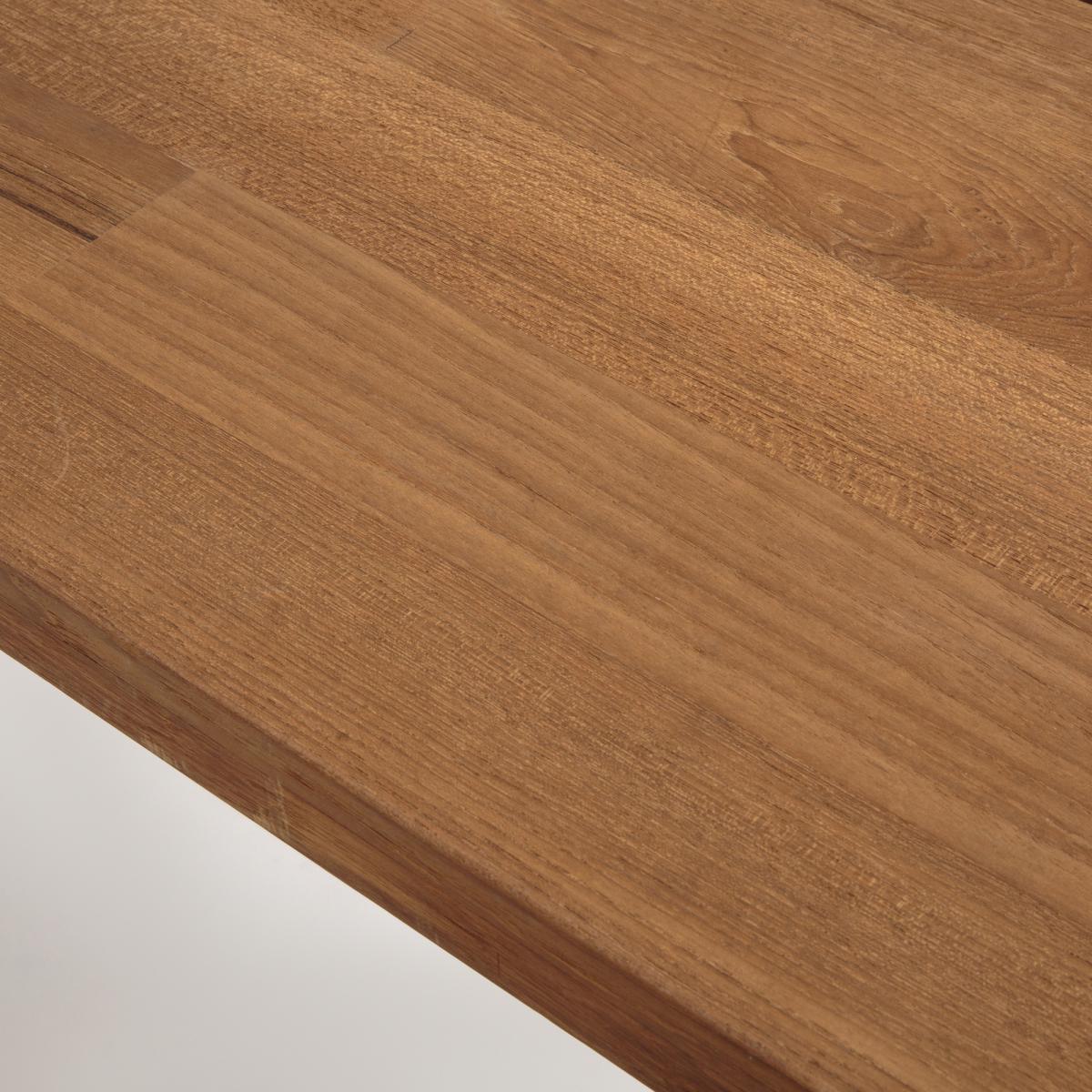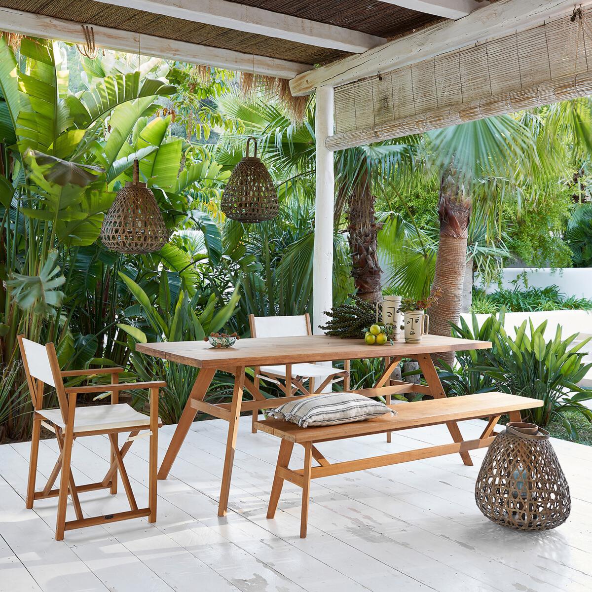 I love this teak garden table for its clean, understated design and durable natural finish, making it a versatile piece for outdoor dining. It works well in both contemporary and rustic garden settings, adding warmth and a touch of organic charm. Practical styling tips include pairing it with woven or timber seating for a cohesive look, or adding colourful cushions and outdoor lanterns to create a inviting social space. Its sturdy construction makes it perfect for family gatherings and outdoor entertaining, while its timeless appeal ensures it will age beautifully with minimal maintenance.