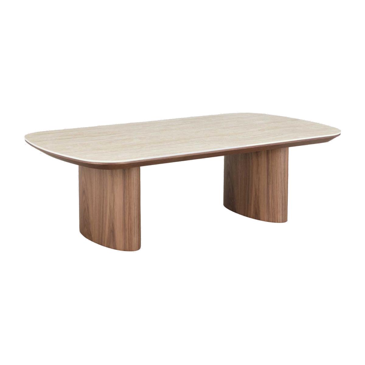 Elevate your living space with this stunning coffee table, featuring a luxurious ceramic top and warm MDF natural walnut veneer base. The combination of sleek stone and rich wood creates a sophisticated, modern look, while offering durability and everyday functionality. Perfect for contemporary living rooms, this table is both a stylish centerpiece and a practical surface for your decor, drinks, and gatherings. A harmonious blend of elegance and warmth for any home.