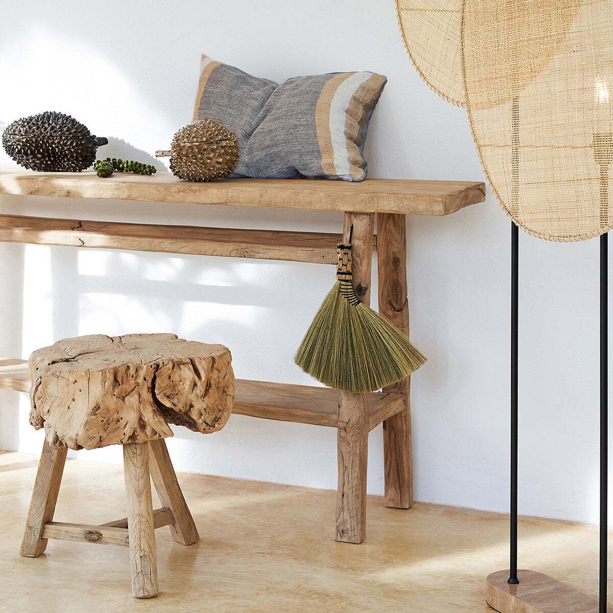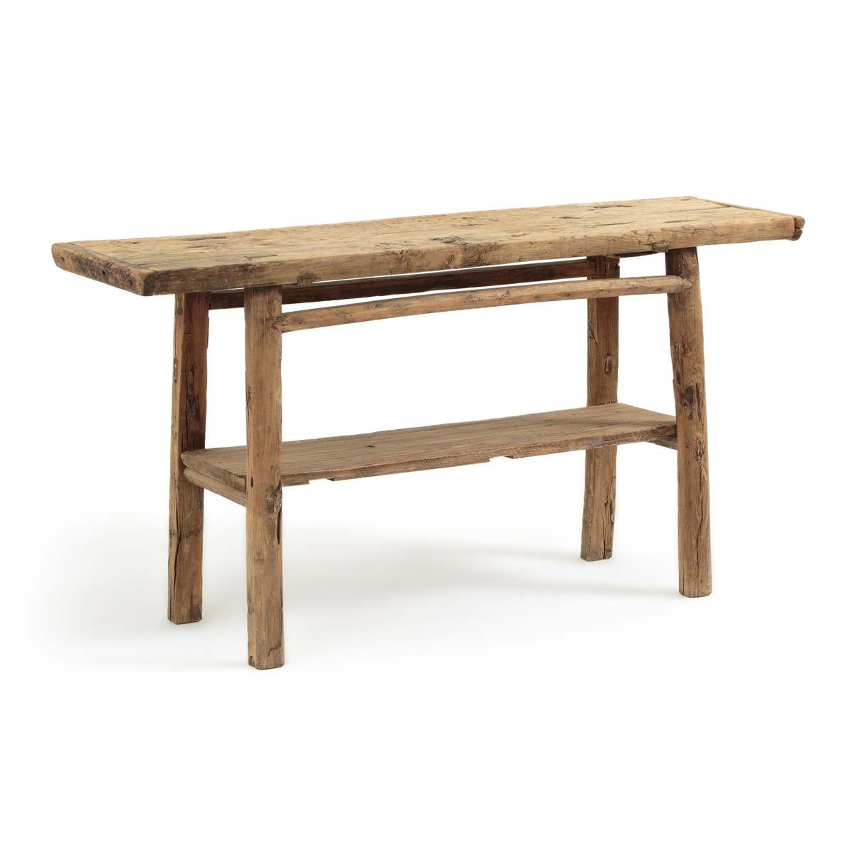I love this piece because of its rustic charm and sustainable appeal, thanks to the recycled solid elm material. It works well in a variety of interiors, from welcoming entryways to relaxed living rooms, where its natural, weathered look adds warmth and character. For styling, consider using it as a surface for decorative objects like vases, trays, or sculptures, but also think practically by pairing it with hooks or baskets underneath for added organisation. Its sturdy construction makes it versatile-perfect as a base for a combination of practical storage and decorative displays, helping to create a cosy yet functional space.