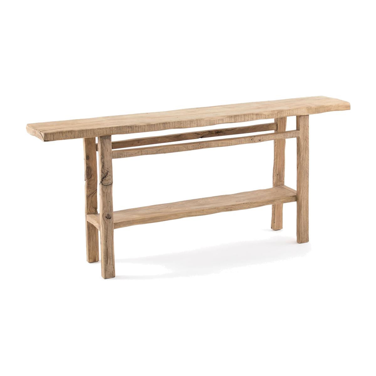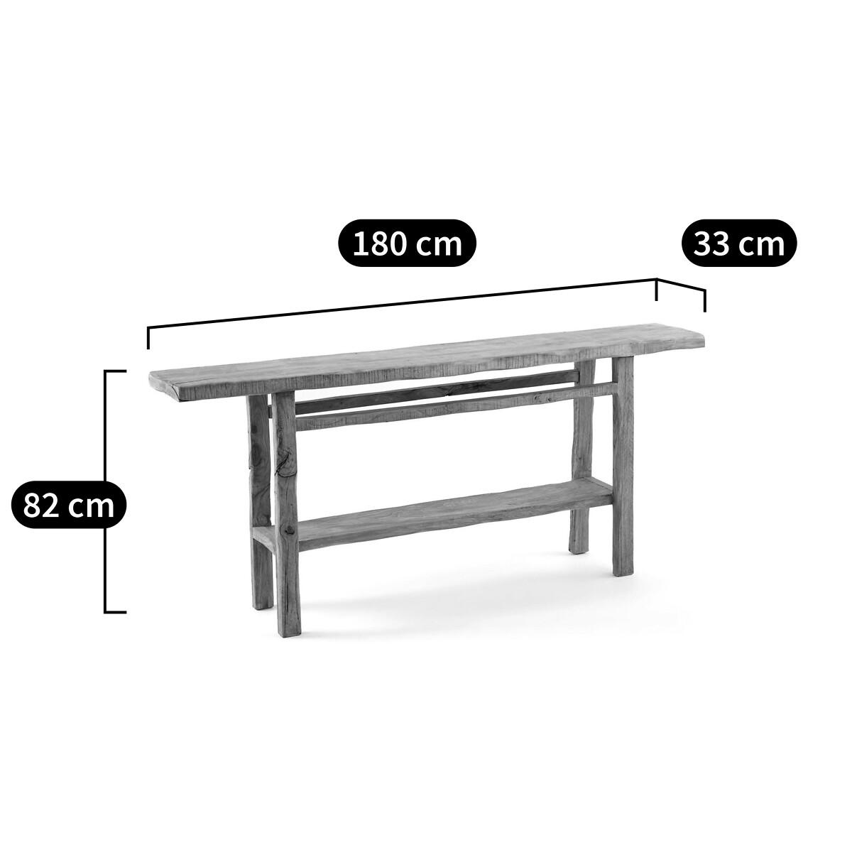 The Sumiko XL model console, like the other pieces of furniture in the range, is a benchmark in the recycling process. It is crafted from wood reclaimed from historic villages in China. Each piece is unique, and reveals the imperfections of the wood's previous history. Product Details • In recycled solid elm, each piece is unique. Dimensions can vary up to 2 cm (+ or -) • Supplied pre-assembled. Dimensions • L180 x H82 x D33 cmDelivery:. The console table will be delivered pre-assembled, direct to your door! Note! Please check that all access points are large enough to accommodate your delivery (doors, stairs, lifts). • RECYCLED WOOD. Using recycled wood saves resources and reduces waste. Dimensions and weight of parcel • L185.5 x H89.5 x D41 cm • Weight: 56kg