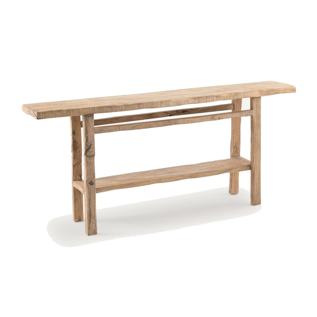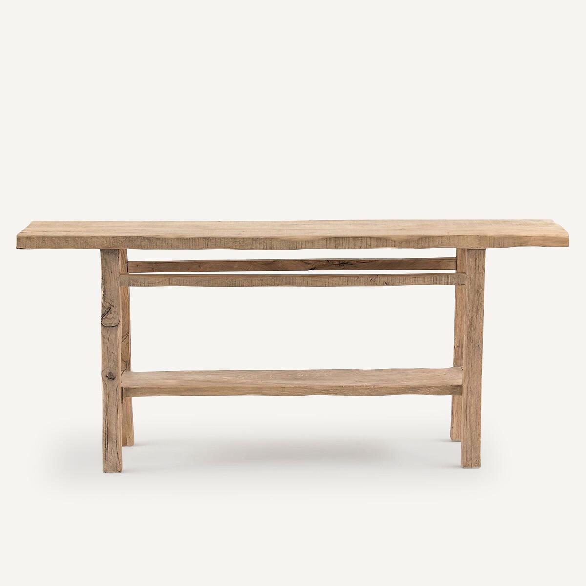 The Sumiko XL model console, like the other pieces of furniture in the range, is a benchmark in the recycling process. It is crafted from wood reclaimed from historic villages in China. Each piece is unique, and reveals the imperfections of the wood's previous history. Product Details • In recycled solid elm, each piece is unique. Dimensions can vary up to 2 cm (+ or -) • Supplied pre-assembled. Dimensions • L180 x H82 x D33 cmDelivery:. The console table will be delivered pre-assembled, direct to your door! Note! Please check that all access points are large enough to accommodate your delivery (doors, stairs, lifts). • RECYCLED WOOD. Using recycled wood saves resources and reduces waste. Dimensions and weight of parcel • L185.5 x H89.5 x D41 cm • Weight: 56kg