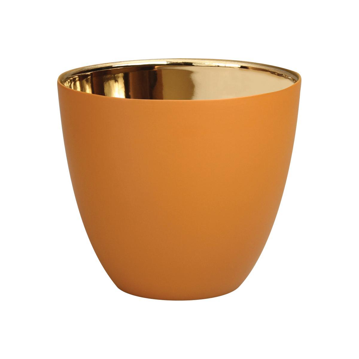 I love this candle holder for its sleek, modern look that easily elevates both contemporary and eclectic interiors. Its porcelain body combined with the metallic gold interior creates a luxurious, refined vibe, making it a versatile piece that works well on a mantel, side table, or as a centrepiece. The warm gold finish adds a touch of sophistication without being overly ostentatious. To style it effectively, consider pairing it with simple, neutral-toned accessories or contrasting textures like matte ceramics or natural woods. For practicality, use it with pillar or tealight candles to create a cosy, inviting atmosphere, especially in cosy lounges or minimalist spaces. Its height at 8cm makes it ideal for small to medium-sized candles, ensuring it’s both functional and visually appealing.