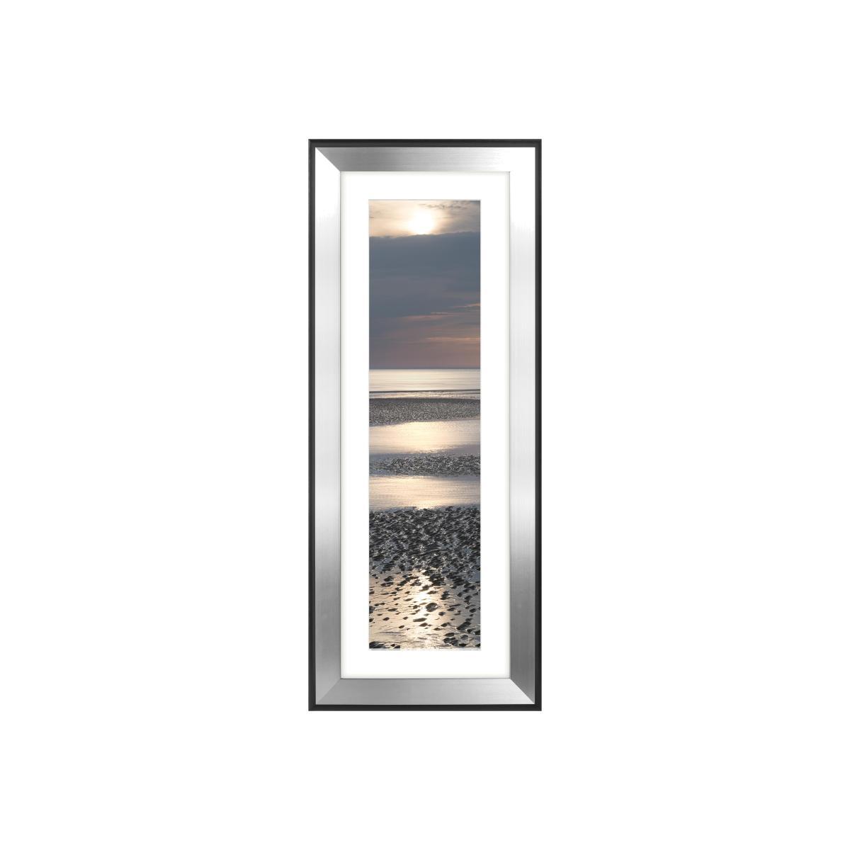 Summer Sparkle II is a striking art print from the work of highly respected landscape photographer Mike Shepherd. Shepherd is influenced by the work of Ansel Adams and is an expert in digital imaging techniques. This lovely print shows a beach at sunset. The sun is still high in the sky, but the clouds below at the horizon are pink, and an evening light is cast on the calm sea and the sand of the beach, with strips of pebbles adding interest in the foreground. This piece is perfect paired with the companion work by the same artist, Summer Sparkle I. Summer Sparkle II is framed, with a glittered liquid resin applied to the glass to add that extra sparkle. Dimensions. Width: 40cm (16in). Height: 100cm (39in).