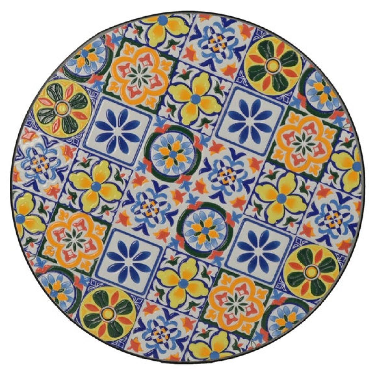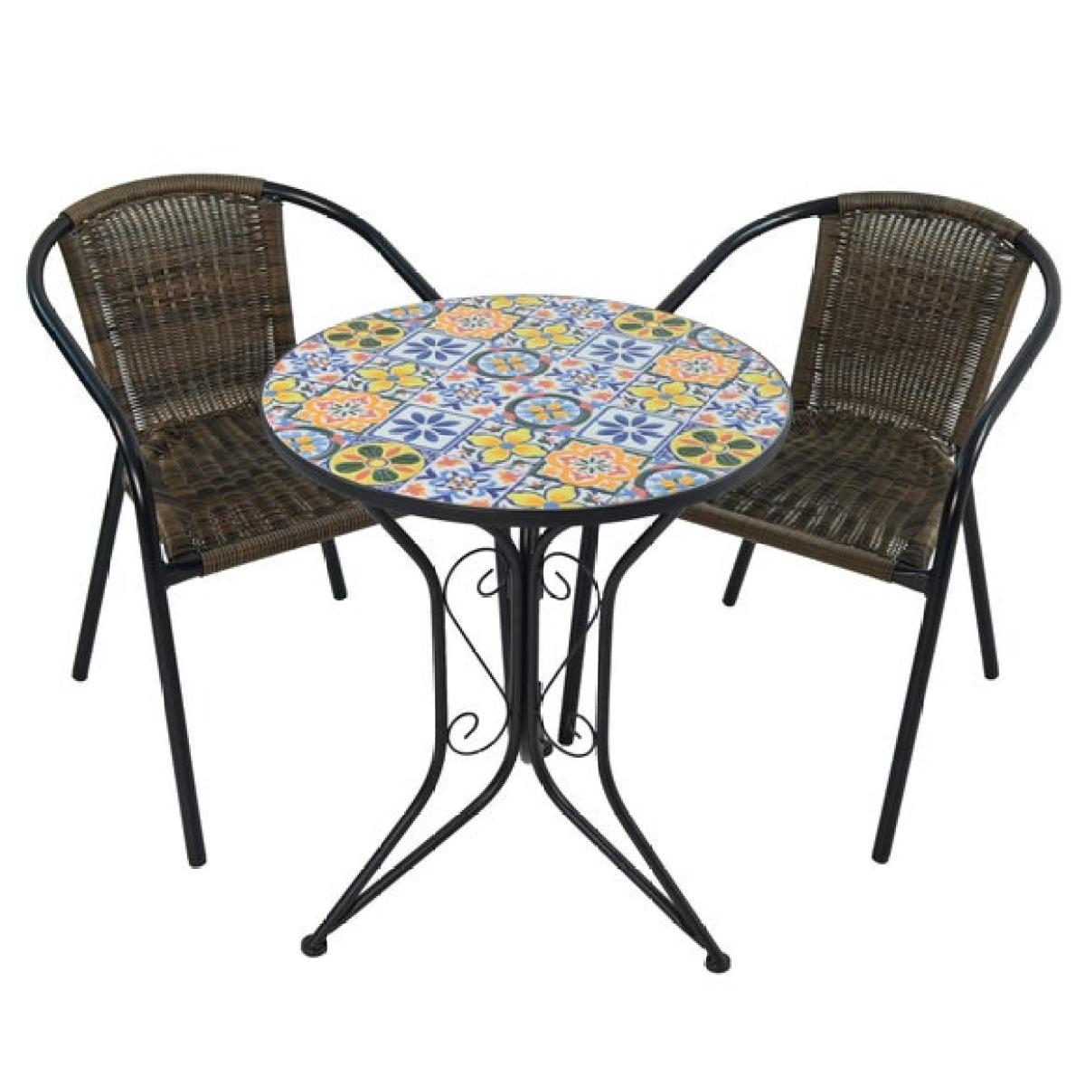 * Bistro set for two * Multicoloured mosaic table * Ceramic tile * Stackable, lightweight chairs * Resin wicker seats The Summer Terrace Charlotte Round Bistro Table brings a Mediterranean vibe with its vibrant tile design, perfect for adding a splash of colour to your outdoor space. Designed for two, it’s ideal for casual snacks or cosy meals. The accompanying Springdale chairs feature glossy black steel frames and smooth hand-woven resin wicker, offering comfort and style, and can stack for easy storage. With minimal setup required, this set blends beauty and practicality for your garden or patio.
