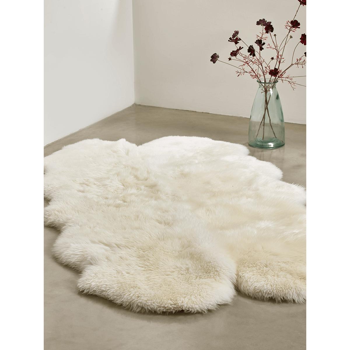 Made from sumptuous, supersoft sheepskin that has been carefully manufactured in the UK, this large soft white rug is comprised from four pieces of 100% natural sheepskin, beautifully stitched together on the reverse. A luxurious skin perfect for by the coffee table or on a sofa.