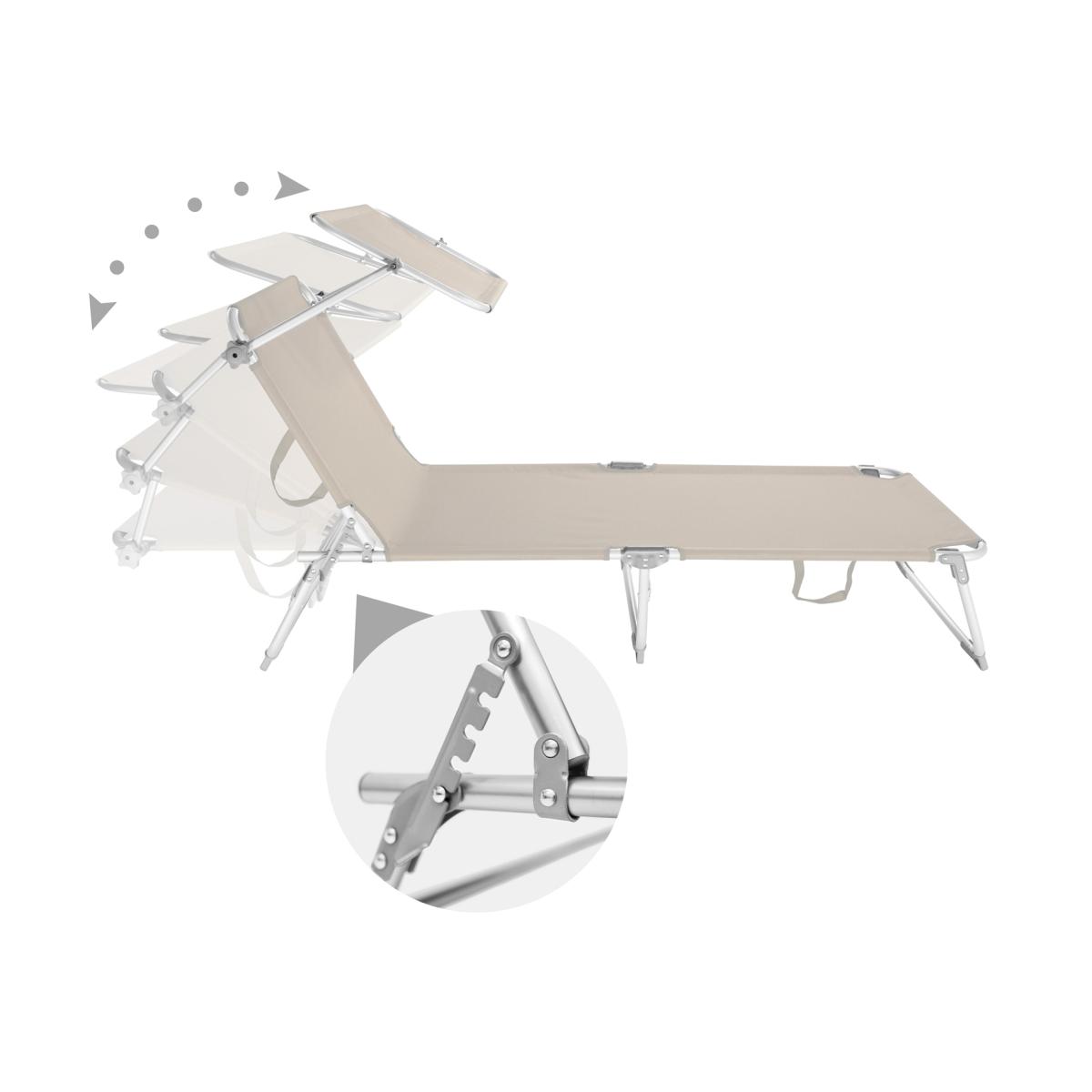 With this high-quality sun lounger with a sunroof from tectake, you are sure to relax and enjoy some nice hours in the sun. Whether in your home garden, on the beach or on an outdoor camping trip, this sun lounger is sure to offer total relaxation. The compact design of the folding sun lounger ensures space-saving transport and the sun lounger can easily be carried on the two integrated handles. The backrest of the sun lounger can be adjusted in 4 steps and the adjustable sun shade provides a sun-protected place for your head when needed.