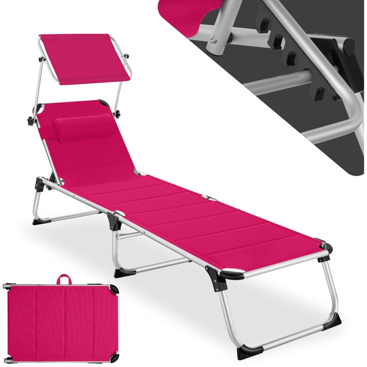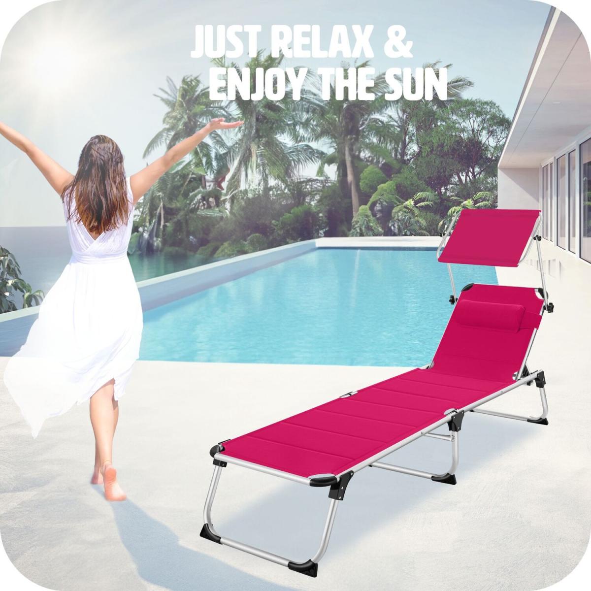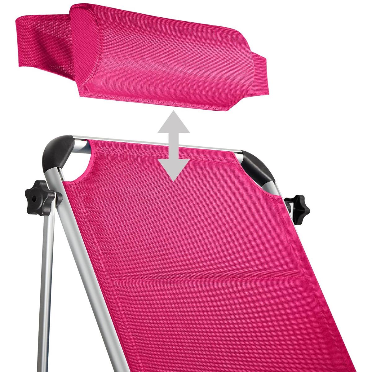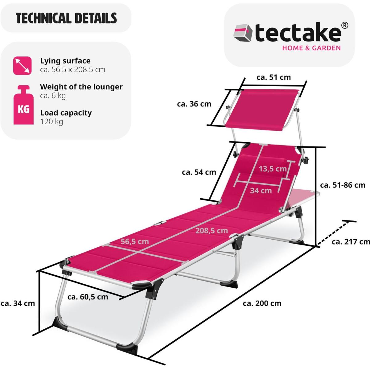 Make sure you get the best spot in the garden with this functional sun lounger Lorella from tectake. The secure aluminium frame and robust cover of the chair guarantee stability and exceptional durability. Thanks to a clever folding mechanism and lightweight design, these outdoor loungers can be easily transported using the practical carry handles or simply stored in a space-saving way. With six different adjustable positions, the backrest features a comfortable pillow as well as a sun shade, providing perfect holiday vibes from the privacy of your home garden and patio. The recliner is perfect for catching the rays in your garden sun trap, or at the beach on a long summer day. Get the sun lounger Lorella from tectake and enjoy everything summer has to offer.