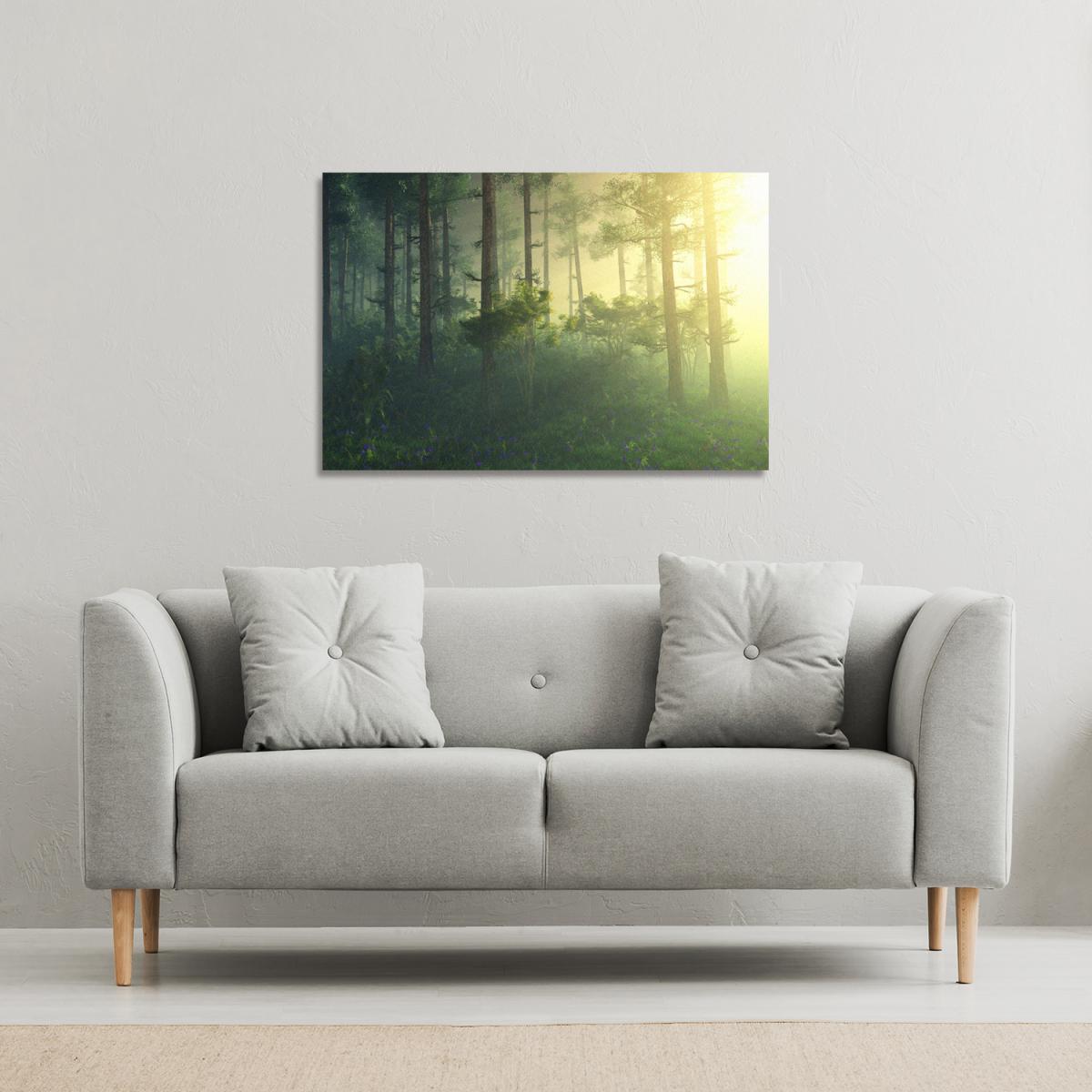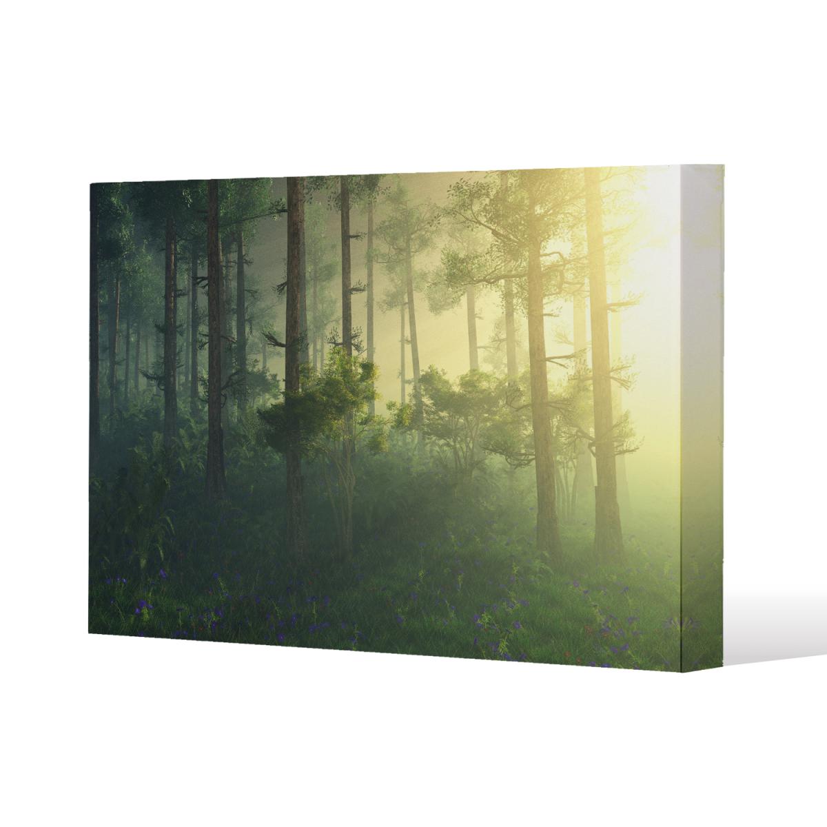 sun, trees in a haze of light, glowing fog among the trees Canvas Print - Green / 114cm / 77cm