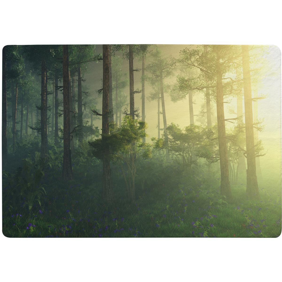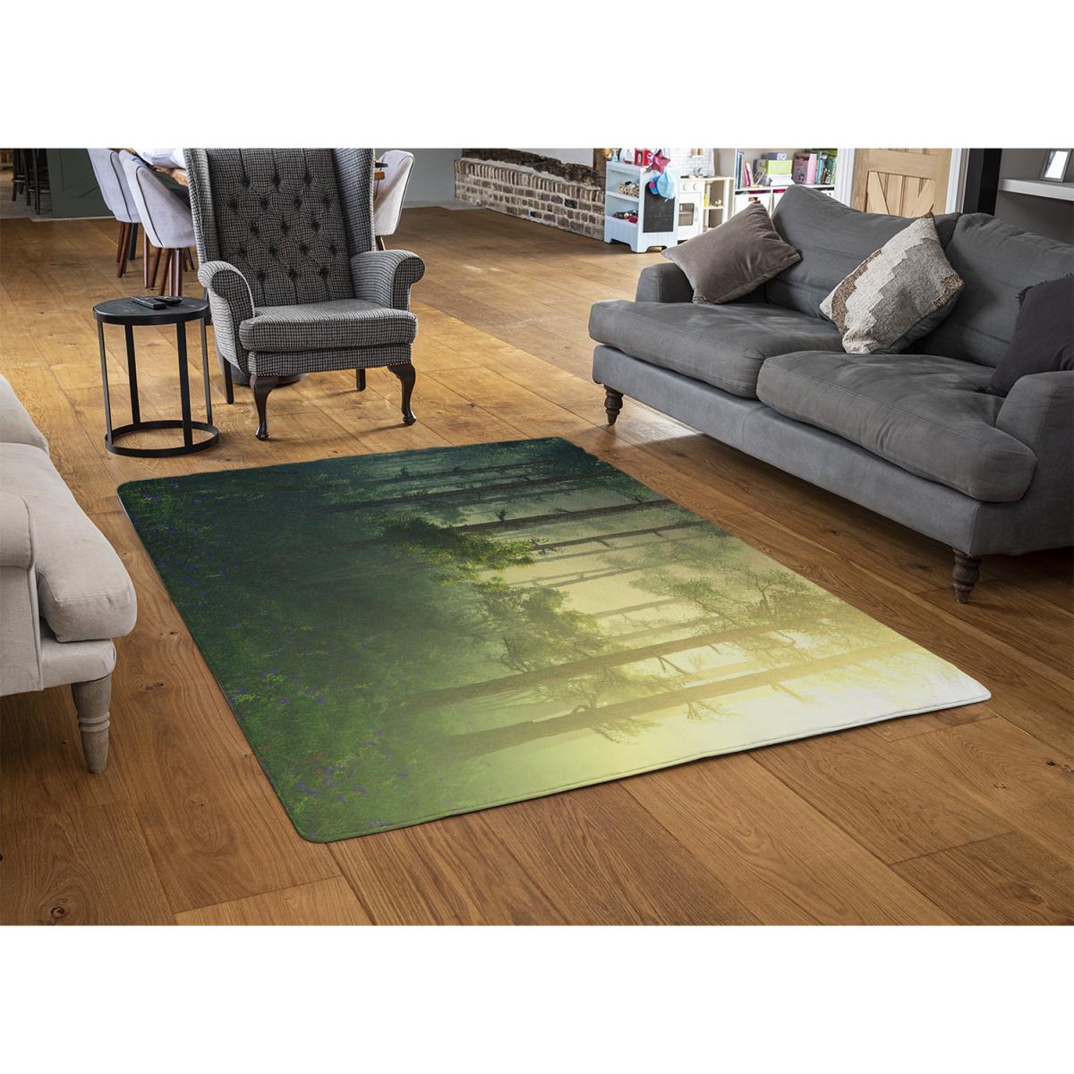 Sun, Trees In A Haze Of Light, Glowing Fog Among The Trees Designer Rug - Green / 150cm