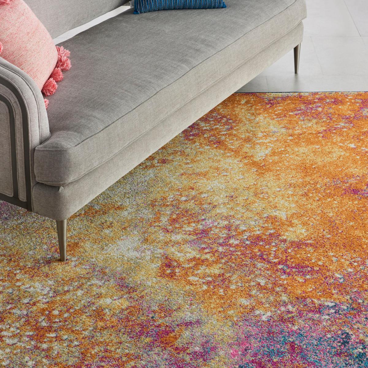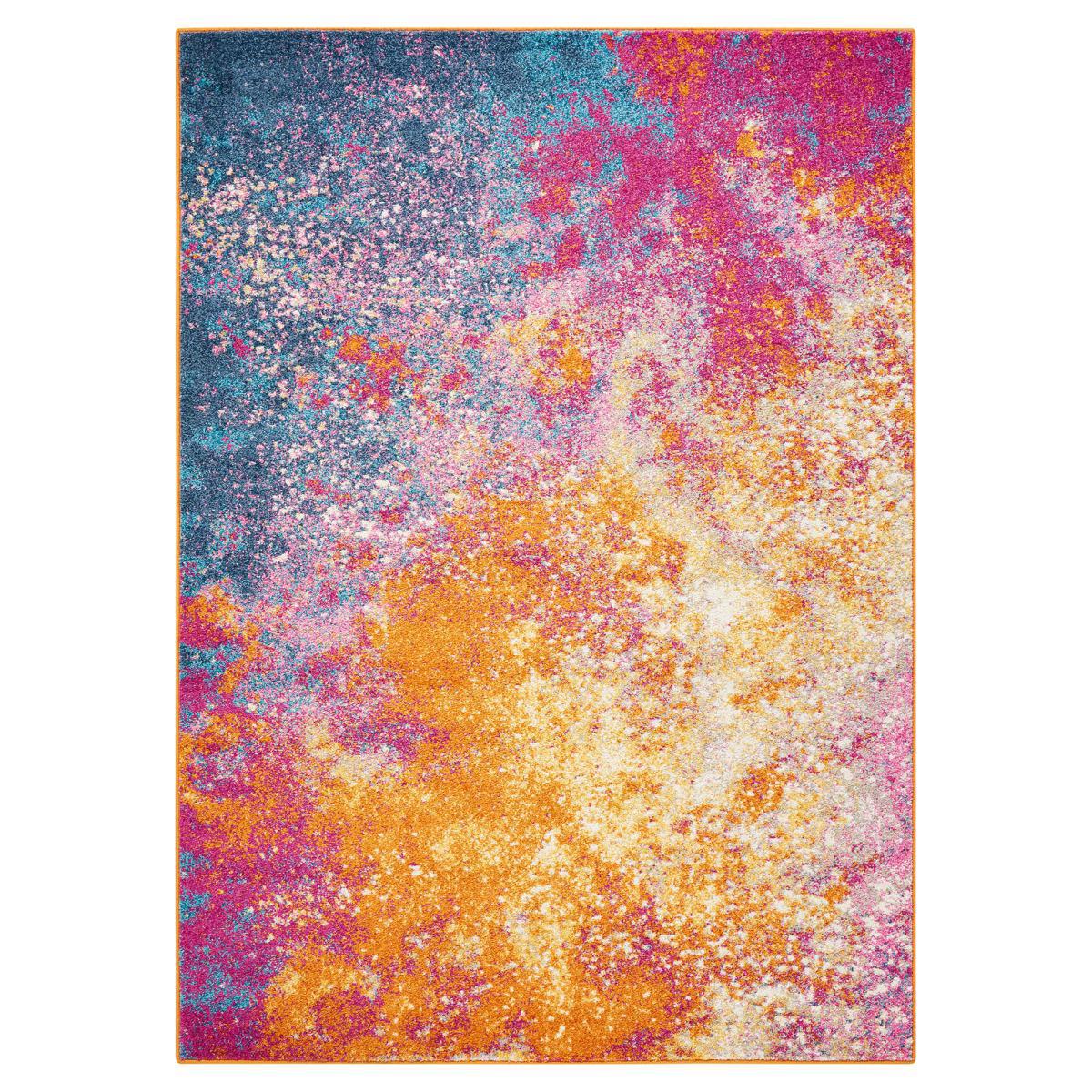 Imaginative flowers in lush and saturated pigments grace this Passion collection of rugs with a beautifully colorful presence. The artful palette mixes fuchsia, petal pink, apricot and lemon on a patinated background of denim blues. These fantastic florals and geometric designs combines hints of Persian antiquity in a modern interpretation to create a stunning and versatile statement piece. Skillfully woven Polypropylene fibers on state-of-the-art power looms combines thick, comfortable pile with an easycare approach. Advanced overdye techniques create an exciting patina effect in shades of pink, blue, and orange. Made from high quality polypropylene, it has been master batch dyed for lasting colour fidelity, expertly woven to Nourison’s superior quality standards on proprietary powerlooms, and finished with a practical jute and latex backing. To ensure your rug lasts, gently vacuum on a weekly basis to remove surface dust and dirt. Do not pull any loose threads, cut carefully with scissors to remove. Occasionally rotate the rug to equalise wear and avoid prolonged exposure to direct sunlight. Clean spills immediately by blotting with a clean cloth. Do not rub. If stain persists, seek professional cleaning. Please note, unfortunately we cannot deliver this item to the Channel Islands. Don’t forget to buy our anti-slip mat. Here. , available in a choice of sizes.