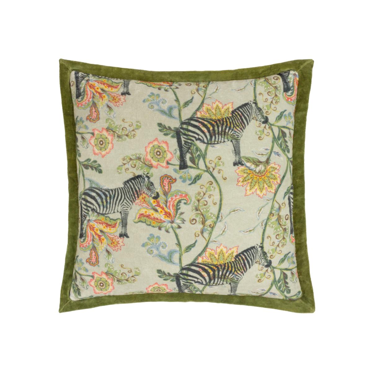 The Sundara cushion showcases a striking zebra design printed onto a luxurious velvet fabric, brought to life by vivid, bold colours that make this piece truly stand out. The cushion is completed with a contrasting colour reverse for added depth and is finished with an Oxford edge, adding a refined touch of sophistication to your decor. This can be used alongside other maximalist furnishings or against neutral tones as a statement piece.