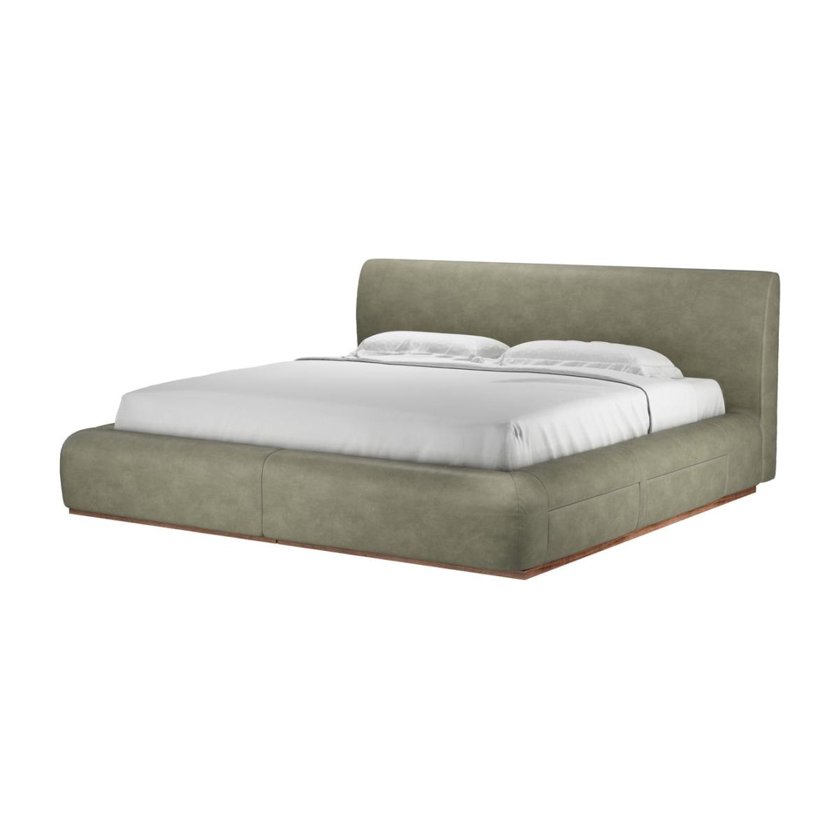I love this bed base because of its sleek, contemporary look and the elegant matcha powdered leather finish, which adds a touch of sophistication without feeling overly fussy. It works particularly well in modern or minimalist interiors, where clean lines and muted tones are key. For styling, consider pairing it with throw cushions and bedding in rich textures or subtle patterns to add depth. It also offers versatility, making it a great foundation for both neutral and bolder colour schemes. Practical tips include keeping the surrounding décor simple to let the quality of the leather take centre stage, and using bedside tables with a matte finish to balance the luxe feel of the fabric.