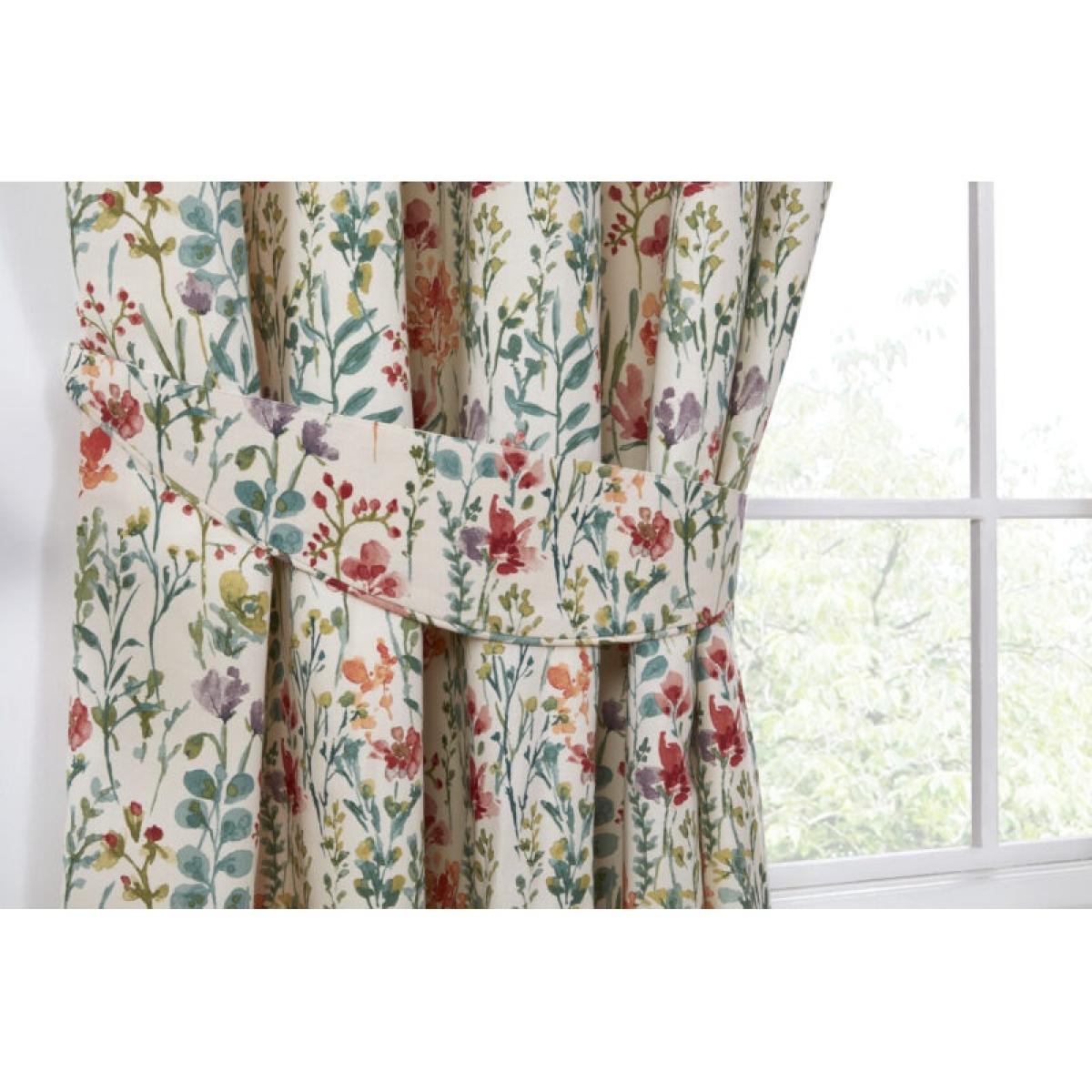 A stunning watercolor floral design in soft shades of pink and green, set against a warm ivory background. The Amaryllis collection includes ready-made curtains, complete with matching tiebacks and cushions. *60 Polyester 40 Cotton *Machine Wash 30. C * Pencil Pleat Please note. All screens vary in colour reproduction and whilst every effort has been made to display the colour as accurately as possible it is for guidance only...