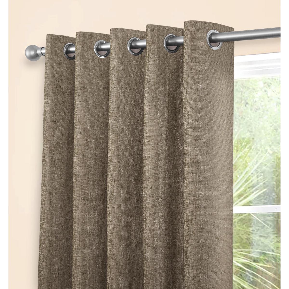 Introduce understated elegance and exceptional practicality to your home with the Sundour Amberley Thermal Eyelet Curtains in a rich Earth tone. Crafted from a luxurious heavyweight chenille fabric, these curtains feature a subtle woven texture that offers a refined, contemporary look with a beautiful, full drape. What sets Amberley apart is its innovative thermal interlining – a unique feature that not only enhances the curtain's weight and feel but also provides an effective thermal barrier at your windows or doors. This helps to retain warmth in colder months, improving energy efficiency and creating a cosier living environment. Designed with modern living in mind, these curtains are fitted with eyelets for smooth, easy hanging and are available in a selection of sizes to suit a range of window spaces. Features: Heavyweight chenille fabric with subtle texture Innovative thermal interlining for enhanced insulation Elegant drape with modern eyelet header Ideal for reducing heat loss and improving energy efficiency Available in earthy neutral tones to complement a variety of interiors Specifications: Material: 100% Polyester Heading Style: Eyelet Care Instructions: Dry clean only Elevate both style and comfort in your home with the Sundour Amberley Thermal Eyelet Curtains – where elegant design meets practical warmth. Please note All screens vary in colour reproduction and whilst every effort has been made to display the colour as accurately as possible it is for guidance only.