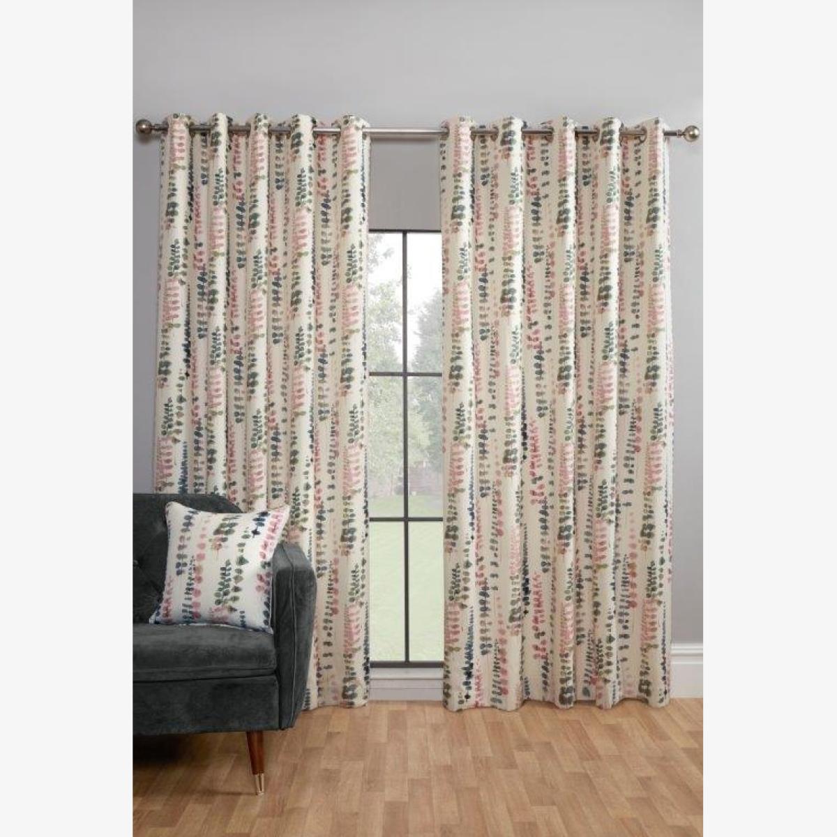 Designed by Prestigious Textiles, Santa Maria features an elegant flowing floral print in colours that bring the spirit of the tropics into your home, and tie in perfectly with any interior design.  Available with an eyelet header for ease of fitting, the stylish look can be completed with matching cushions. Header: Eyelet. Composition: 60% Polyester 40% Cotton. Machine washable. Cushions sold separately. All screens vary in colour reproduction and whilst every effort has been made to display the colour as accurately as possible it is for guidance only