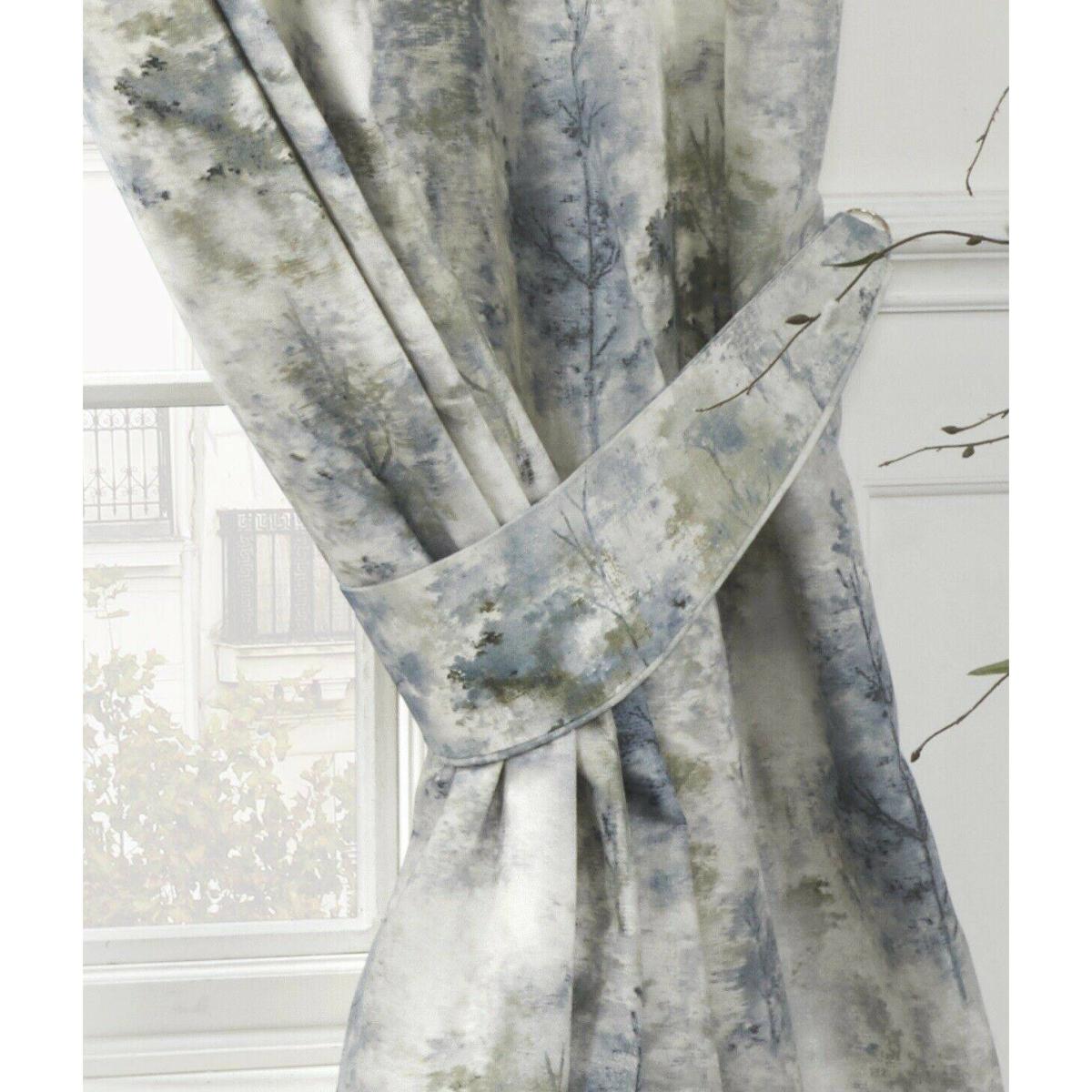 These Sundour Woodland tie backs feature a designer inspired watercolour style countryside tree design in shades of blue, white and green. 40% Cotton 60% Polyester blend. Machine washable Curtains and cushions available separately