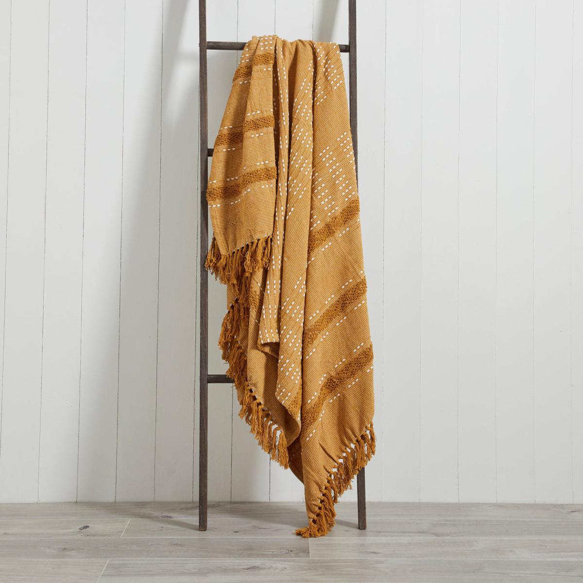 Available in a variety of colourways, this textured throw boasts a geometric design and is complete with a fringed tassel trim. Crafted from 100% cotton, this throw is durable yet super soft and snuggly. Disclaimer: Our throws are not flame retardant and are therefore not suitable as loose covers on upholstered furniture.