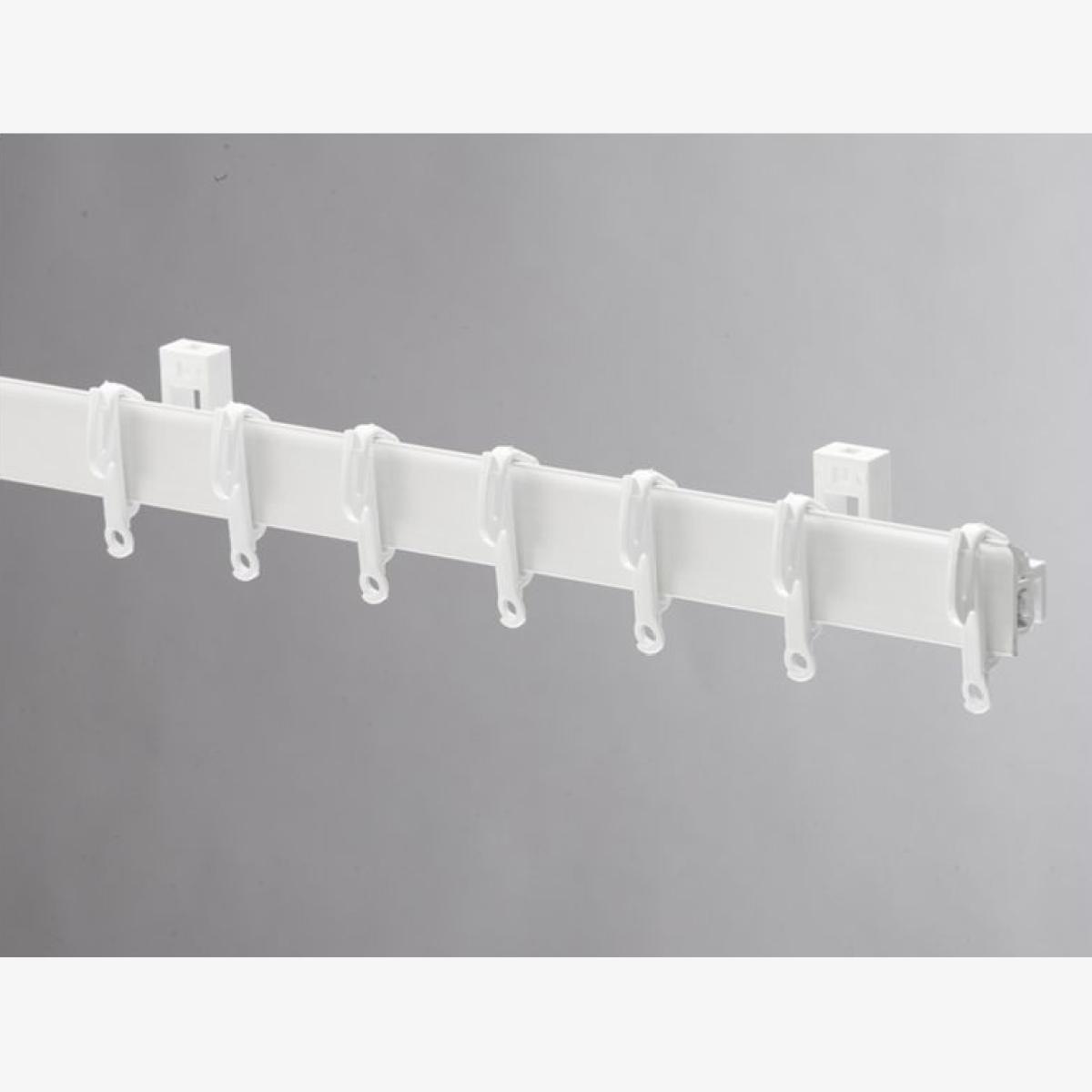 A practical and versatile curtain track that is suitable for medium weight curtain fabrics up to 11.3kgs. The unique hook glider system offers two hanging positions, with an additional option to use a separate liner. Easy to install Ideal for both straight and bay windows as it can easily be bent by hand to fit bay windows of all shapes. Can be wall or ceiling fixed Material; Plastic Colour; White