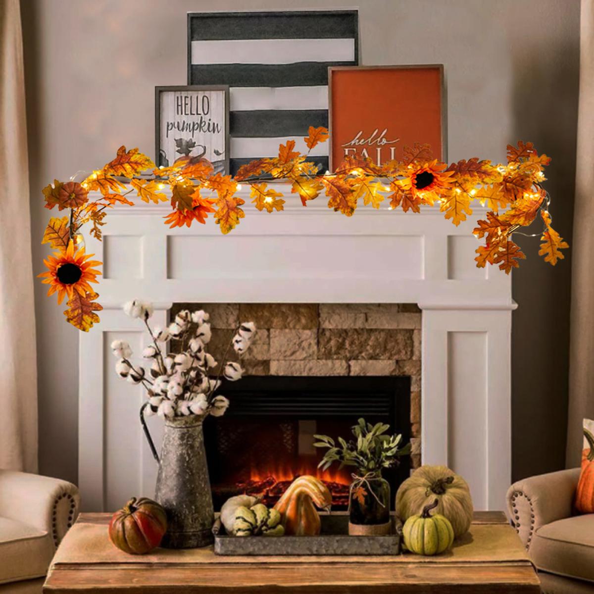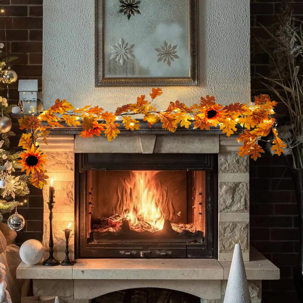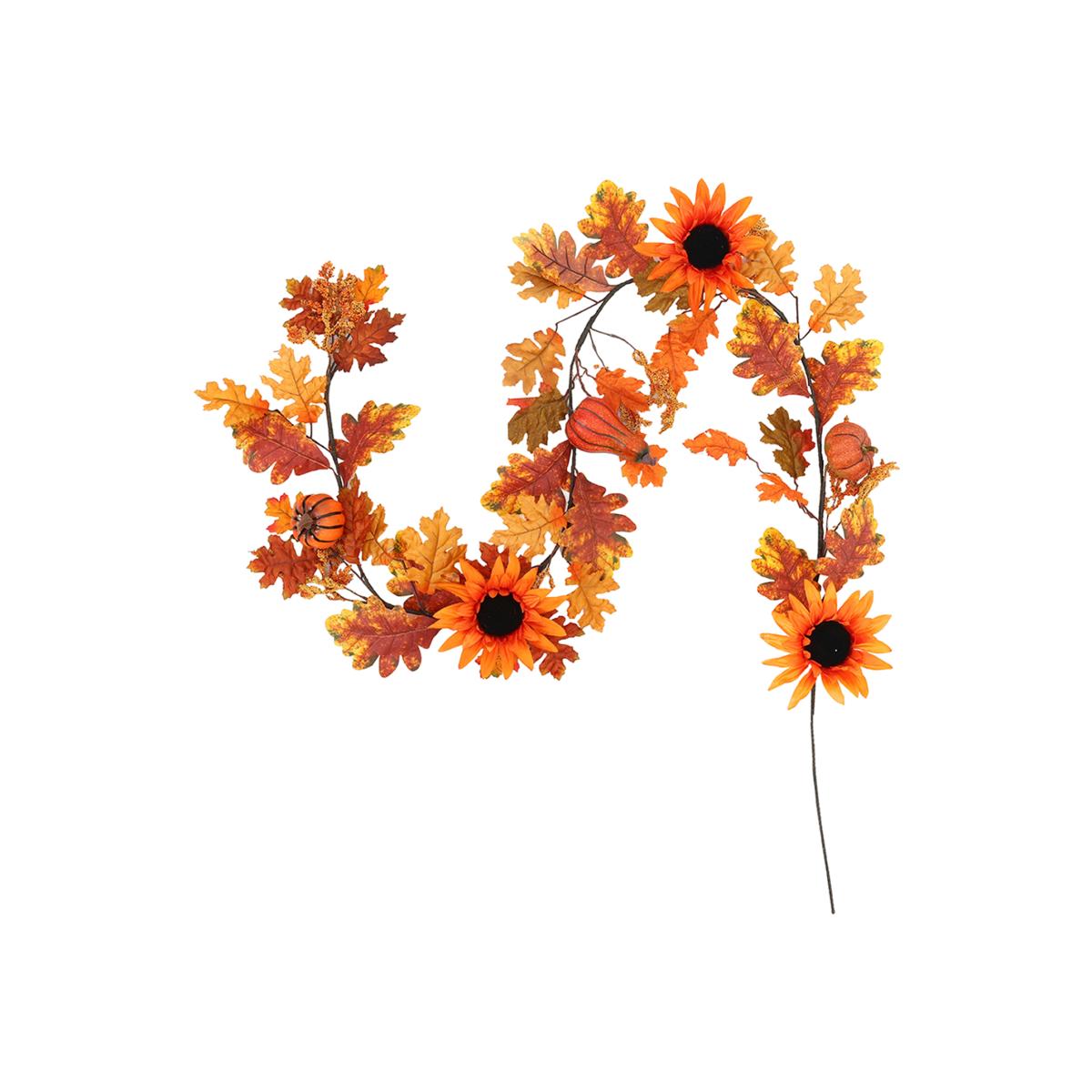 Sunflower Autumn Garland with Lights Decoration - Orange
