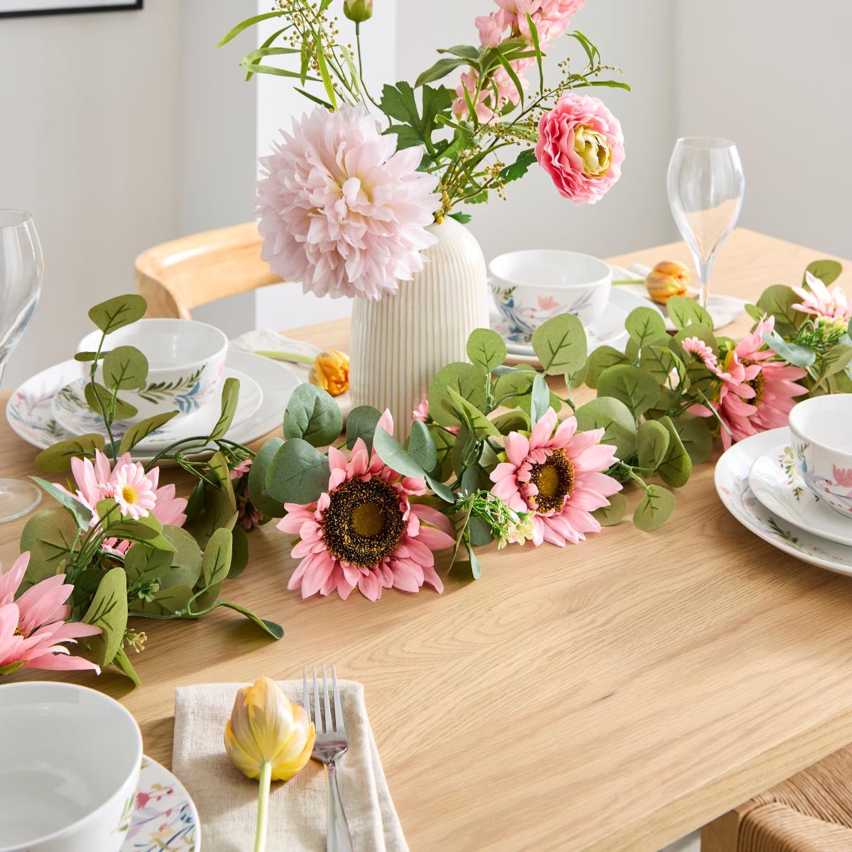 I love the sunflower garland for adding a cheerful, natural touch to dining or living spaces without the maintenance of real flowers. It works particularly well in rustic or modern interiors where you want a burst of colour and texture. Practical styling tips include draping it along a mantle, table runner, or behind open shelving to create a layered, vibrant look. It’s also ideal for seasonal decorating or for brighten-up spaces in darker months, and because it’s artificial, you can enjoy its sunny charm year-round without worry about wilting or water. Just keep it away from direct sunlight to prevent fading, and it’ll stay looking fresh for ages.