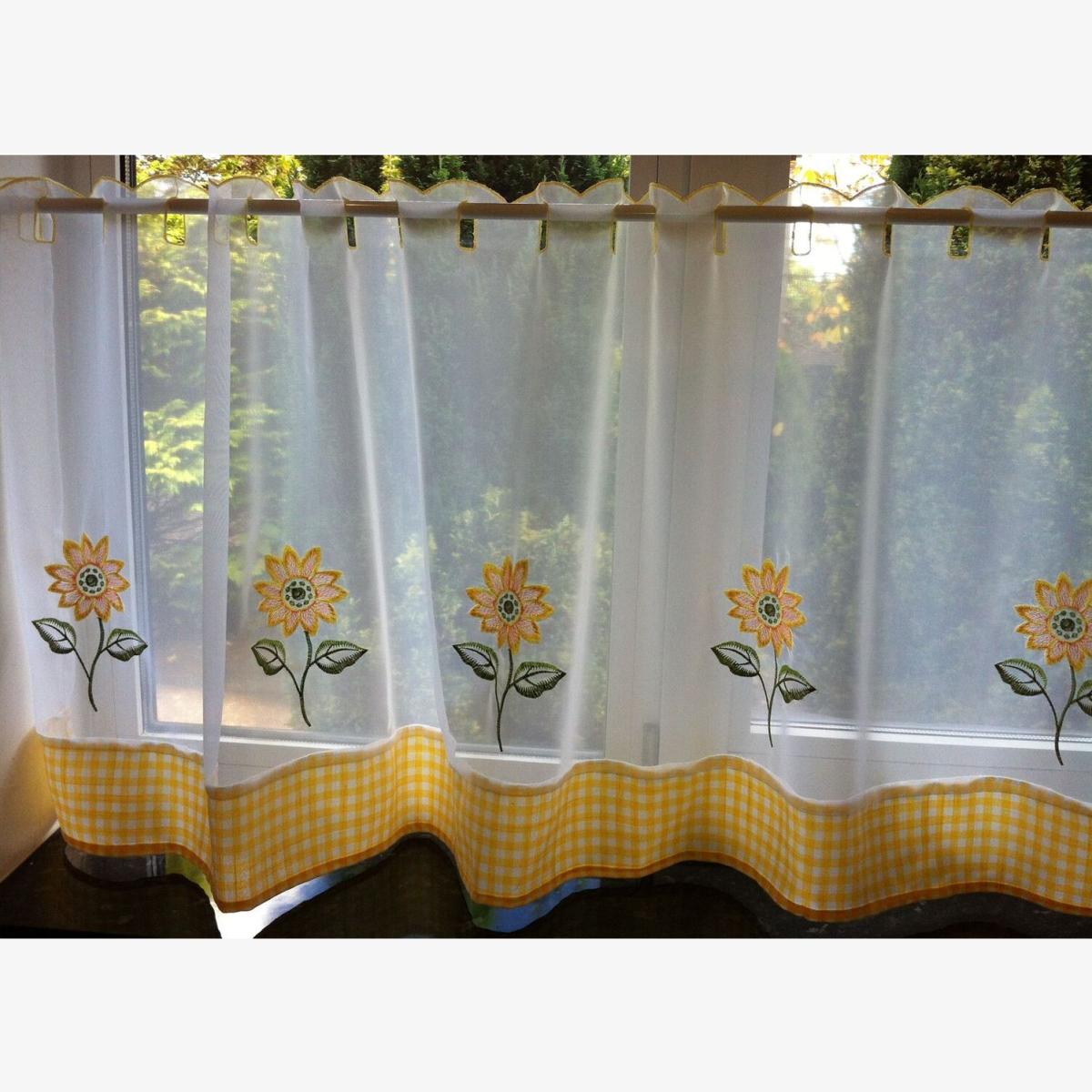 Add the final touches to your kitchen with this sunflower themed curtain panel. It features embroidered sunflowers placed above a gingham checked border.