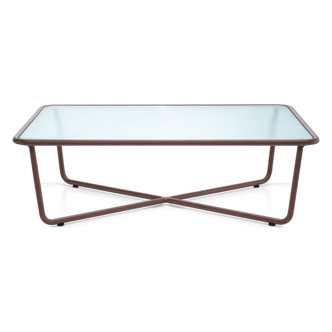 Perfect for long days under the summer sun, the rust and ribbed glass Sunglass 002 Coffee Table, designed by Rodolfo Dordoni and produced by outdoor expert RODA, would lend a touch of contemporary style to any outdoor space. Perfect for the outdoors, whether a shady terrace or sun-soaked poolside, the table features a versatile rust-hued, powder-coated aluminium frame for elevated resistance against corrosion. The tabletop itself is expertly crafted from two layers of laminated glass, one in extra-clear crystal and one fluted. Extremely resistant to the elements thanks to its integrated vinyl safety film, the striking table is sure to enhance any garden. Committed to creating designs that enhance any space, Rodolfo Dordoni has been collaborating with RODA since 2004. Intrinsically linked by their desire to turn the outdoors into a true interior design project, the pieces they create remain faithful to al fresco living.