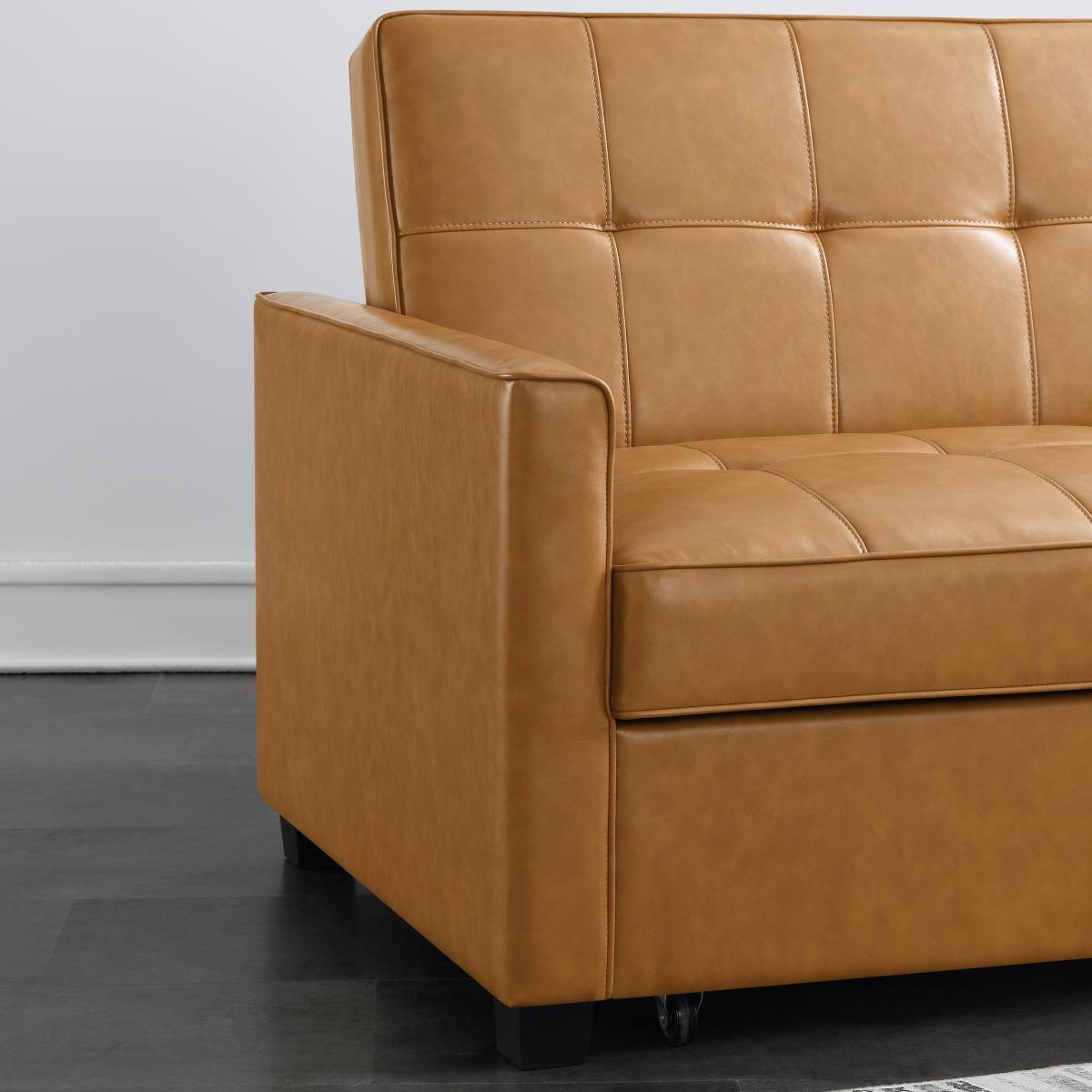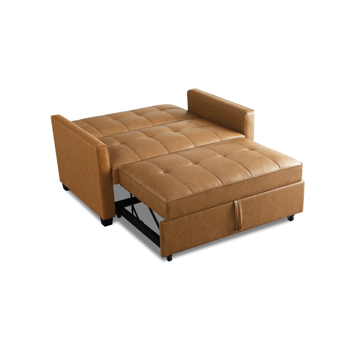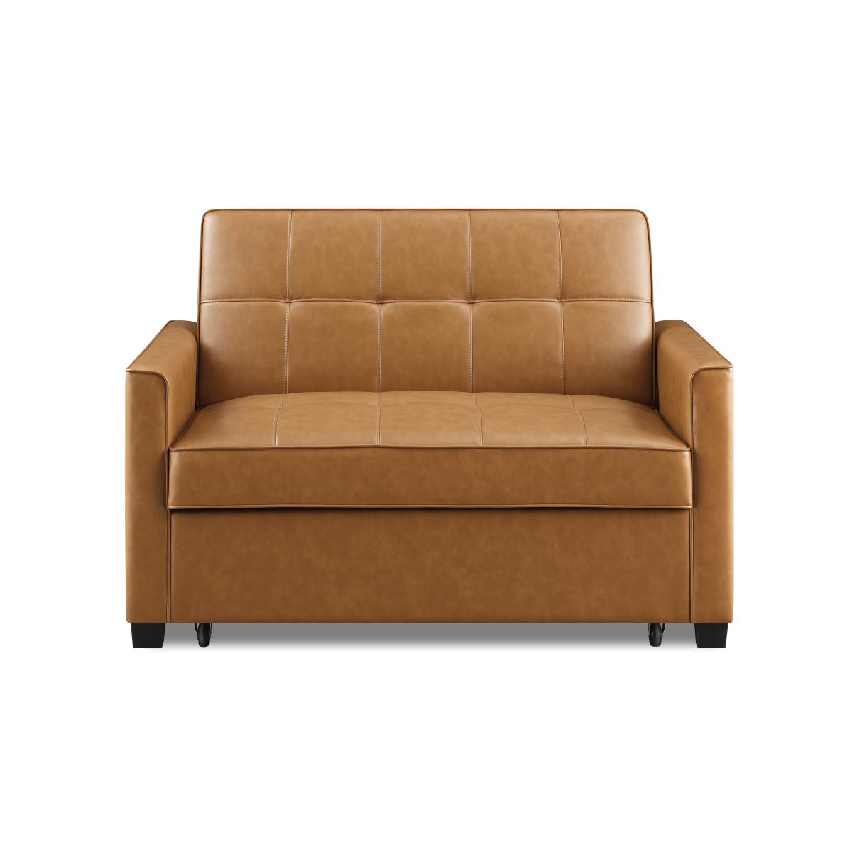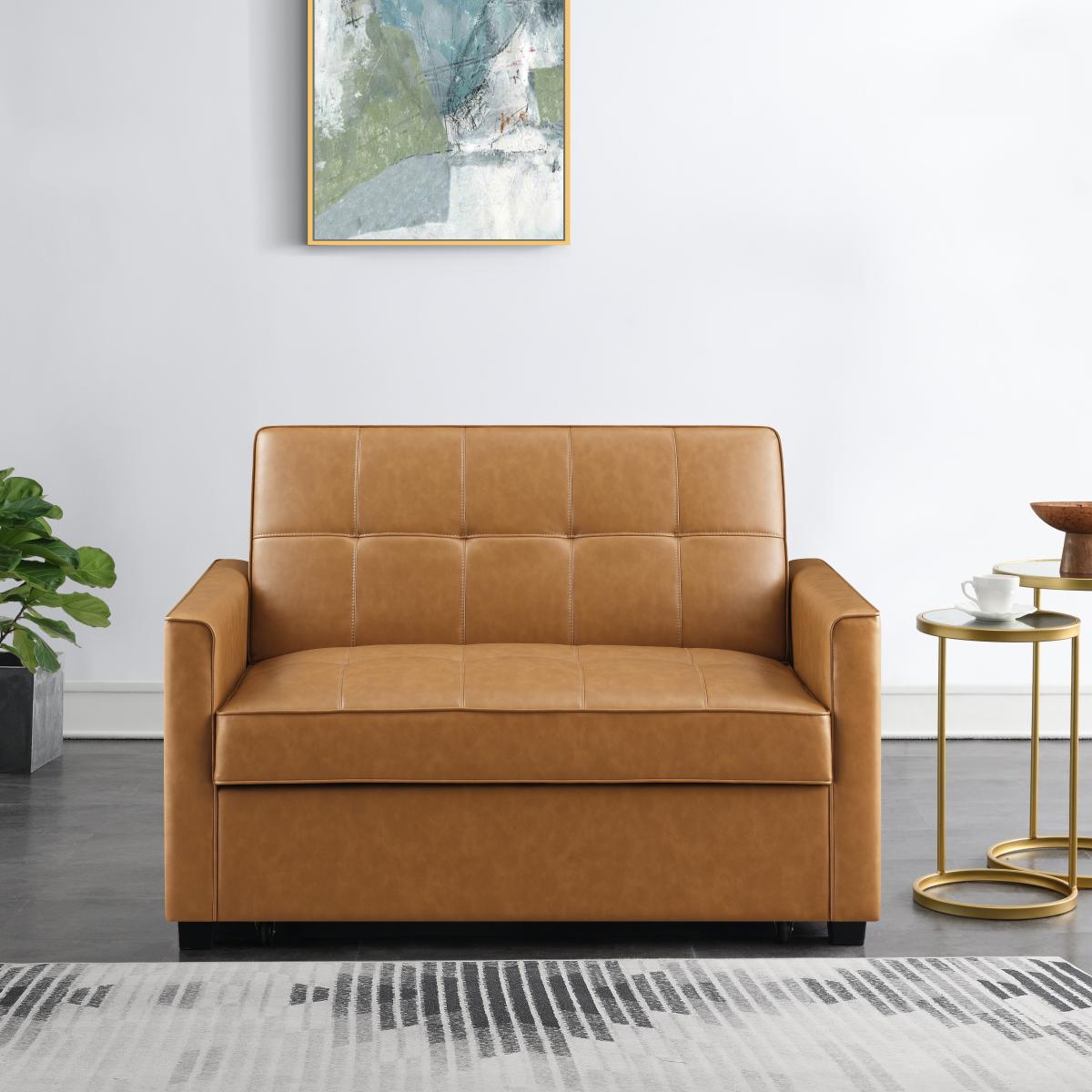 * Modern Sofa Bed* Faux Leather Upolstery* 2 Seater Sofa, Double Mattress* Clic Clac Mechanism This classic sofa bed seamlessly combines tradition with comfort, serving as both a sofa and a bed, making it the perfect choice for maximising limited space in your home. Upholstered in luxurious faux leather, it exudes a touch of sophistication while offering practical multi-functionality. The seat padding of this sofa bed is meticulously crafted with impressive 5cm foam, providing the ultimate comfort for both sitting and sleeping. The combination of S springs and thick layers of foam ensures a level of comfort reminiscent of a high-quality mattress, promising a restful night's sleep for your guests. The user-friendly clic clac mechanism allows for effortless transformation from sofa to bed, making it convenient and hassle-free.