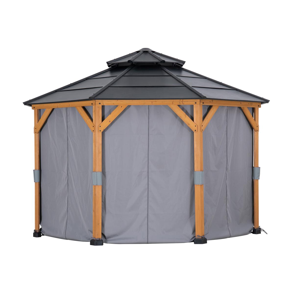 Elevate your outdoor living space with the Sunjoy Grey Polyester Gazebo Curtain 8-Panel Screen Walls, designed to offer superior privacy, protection, and style. Each weather-resistant panel is crafted from premium polyester coated for UV and water resistance, ensuring reliable performance in all weather conditions. The curtains provide full coverage to create a private, enclosed retreat while adding a touch of elegance to your patio or garden. Easy to clean with mild soap and water, they require minimal maintenance and stay looking fresh for years to come. The included ring hardware makes installation quick and hassle-free, so you can enjoy your outdoor space in no time. These gazebo curtains are the perfect addition to your outdoor setup, combining functionality, durability, and style.
