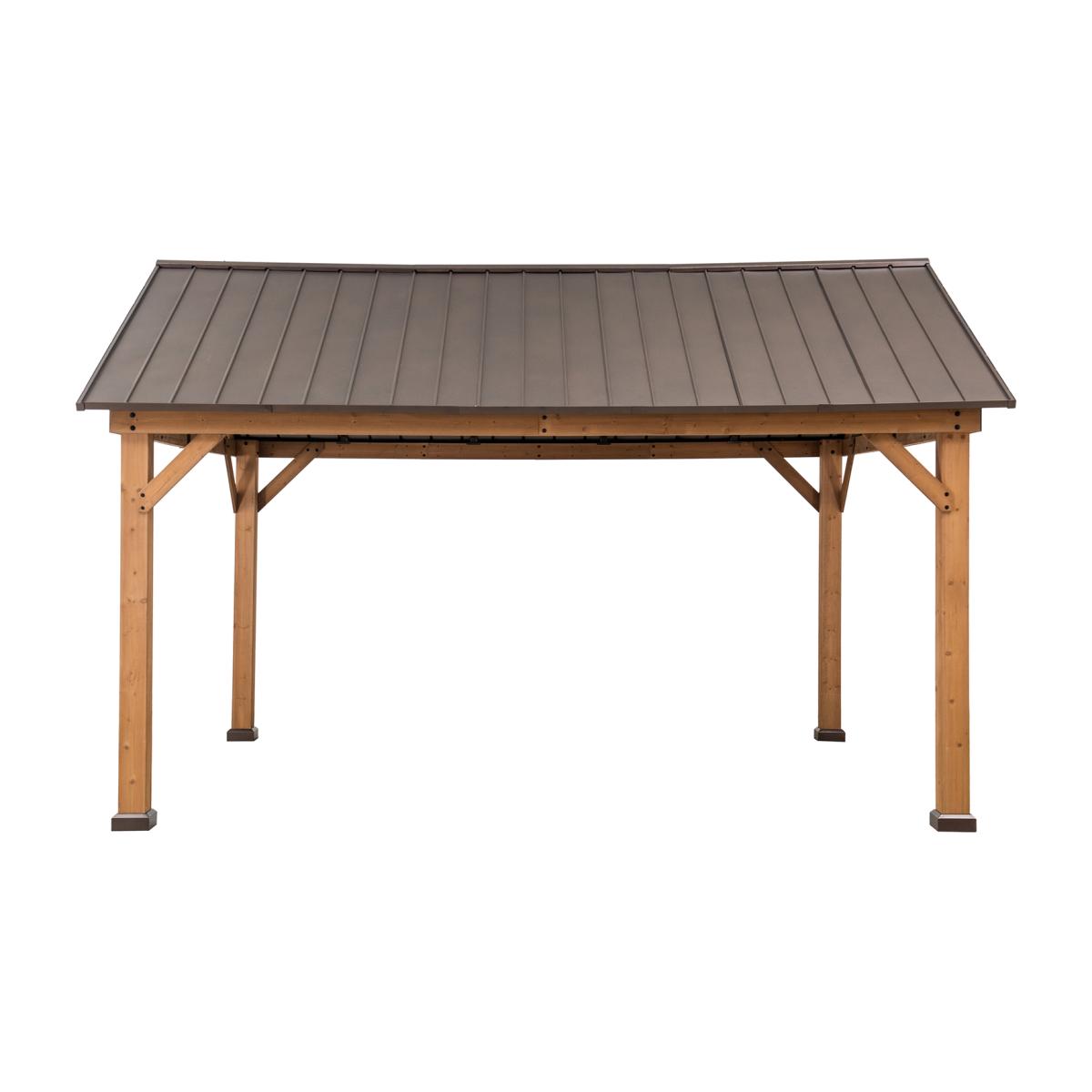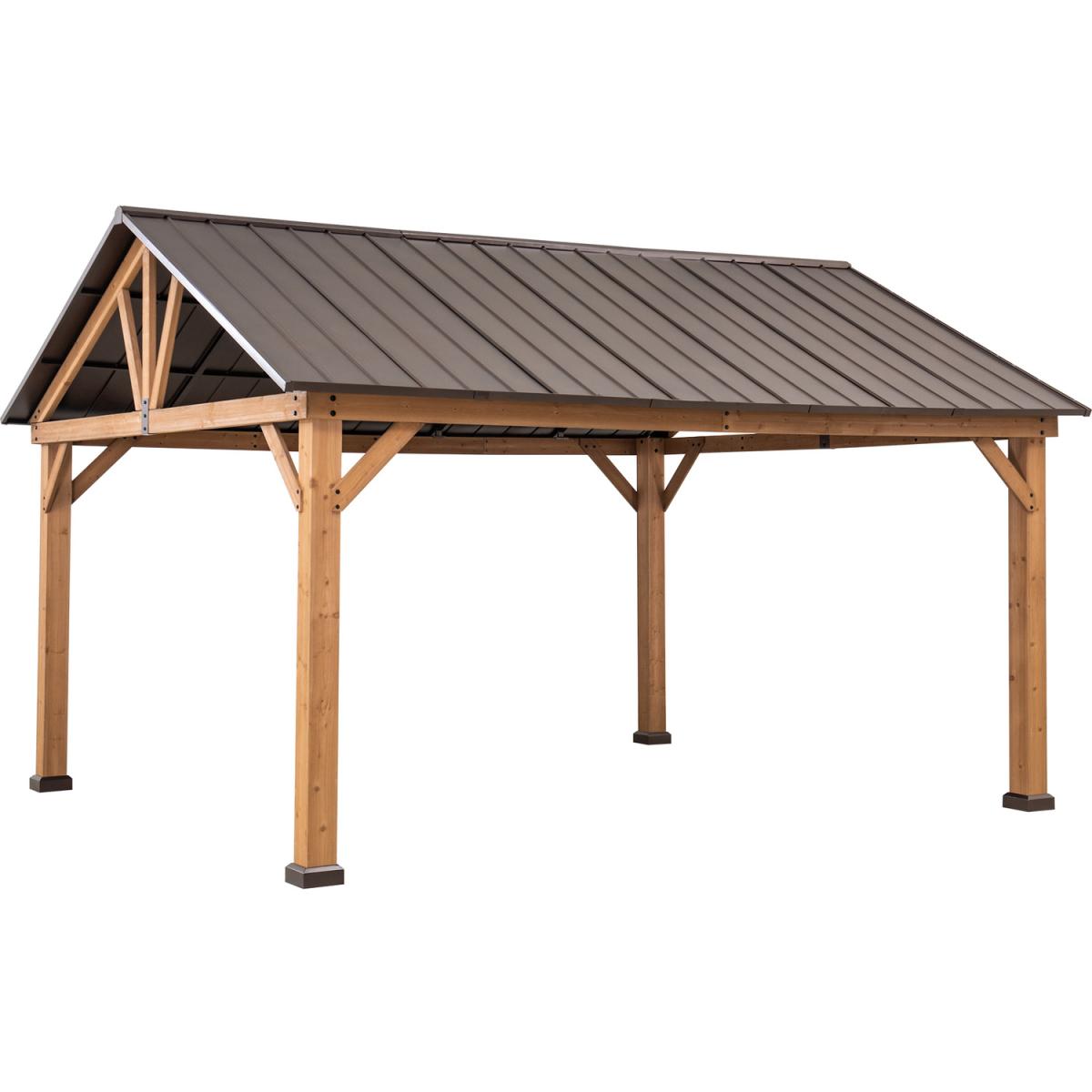 Design your living room under the open sky and create an oasis in the middle of your garden. The gazebo from Sunjoy helps you to protect your retreat. Stay sun-protected under the rust-resistant, powder-coated steel and polycarbonate roof supported by a rust-resistant cedar wood frame. The classic pitched roof design provides just the right amount of airflow while keeping inclement weather at bay. Attaching a chandelier to the built-in ceiling hook gives your gazebo the final design touch. Use the net to keep mosquitoes and bugs away. With the easy-to-understand assembly instructions, you can settle down in your garden and enjoy a cool drink in no time at all. Get twice the reinforcement with our robust wooden gazebo that boasts double-layer beams for twice the support and longevity. You will be enjoying your gazebo and hosting outdoor gatherings for years and years to come, confident in the strength and stability our design offers.