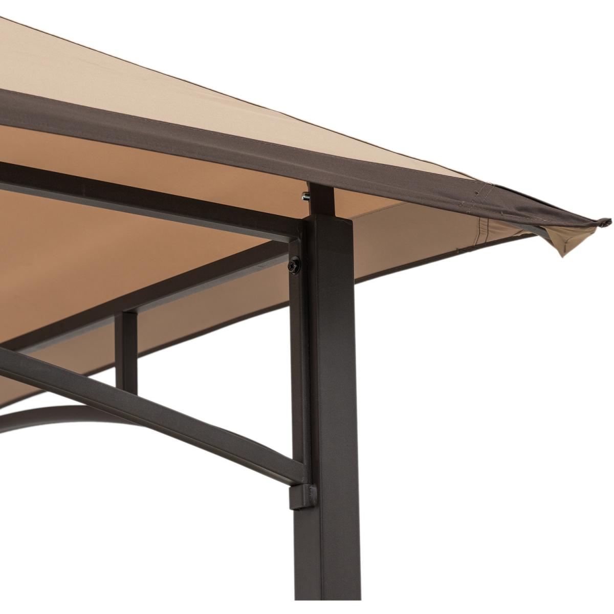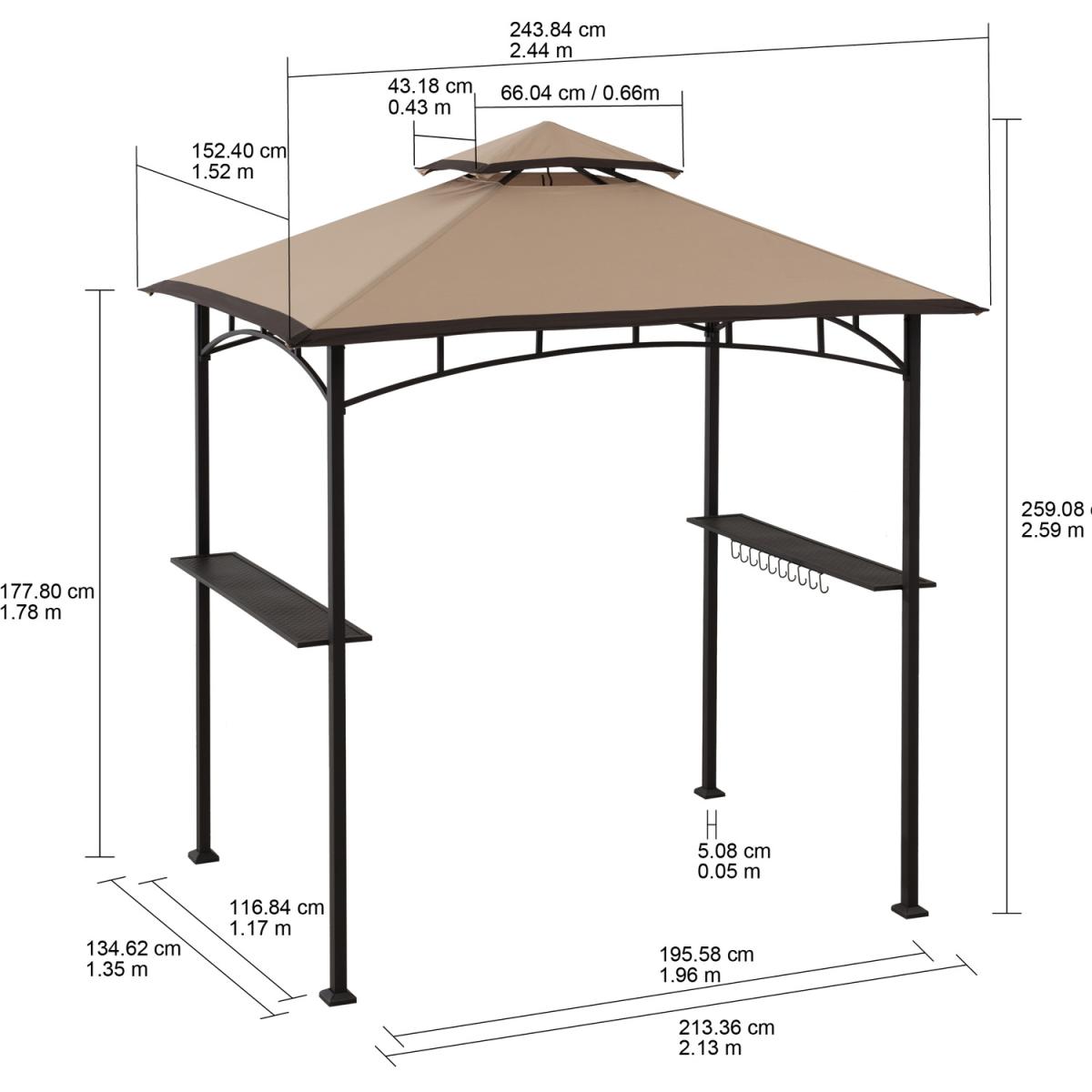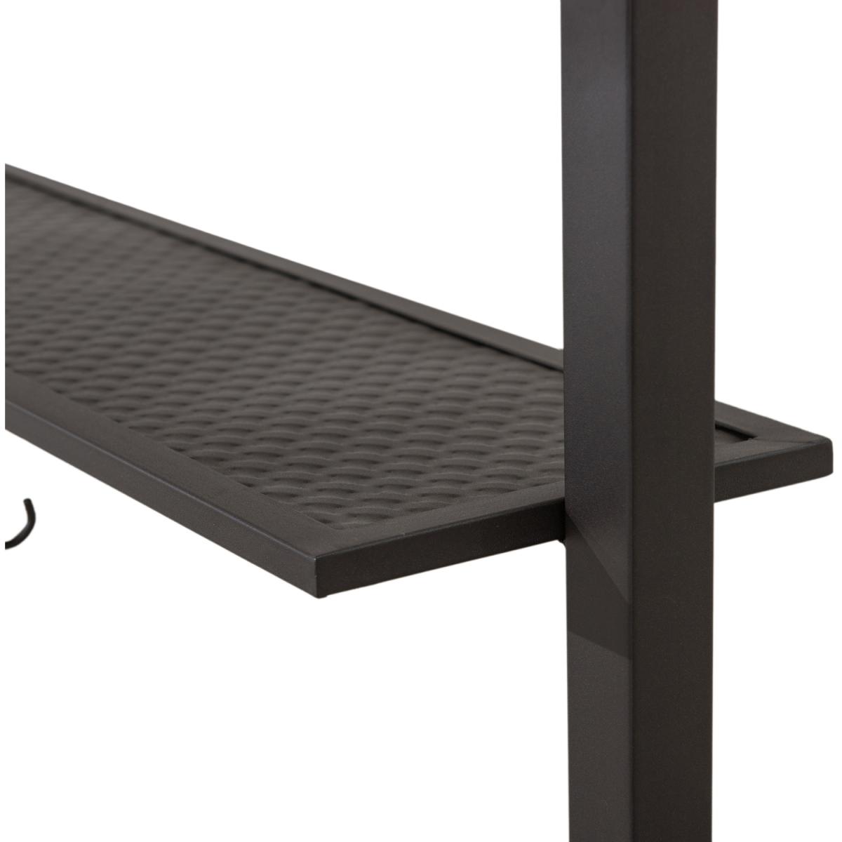 This barbecue pavilion was developed so that you can enjoy your barbecue time in the garden to the fullest. The 244x152cm rust resistant and powder coated steel construction supporting a weather resistant canopy not only protects your grill but also keeps you dry and cool while grilling. Never again risk standing in the rain while flipping your burger. The 2-tier roof helps vent smoke. Practical accessories such as hooks for grilling utensils and built-in shelves make it functional and attractive. With the easy-to-understand assembly instructions, you can enjoy a perfectly grilled steak in no time at all.