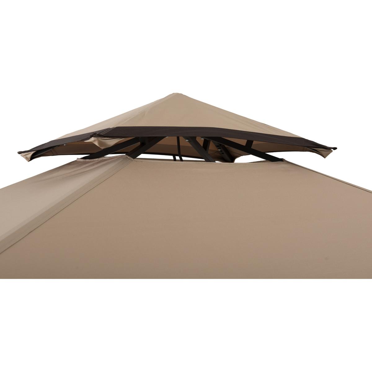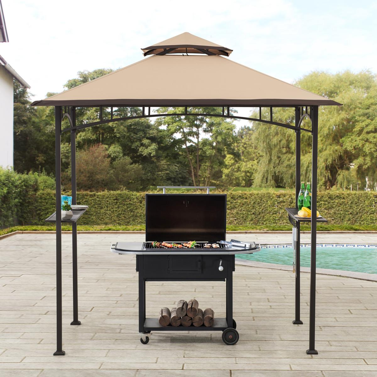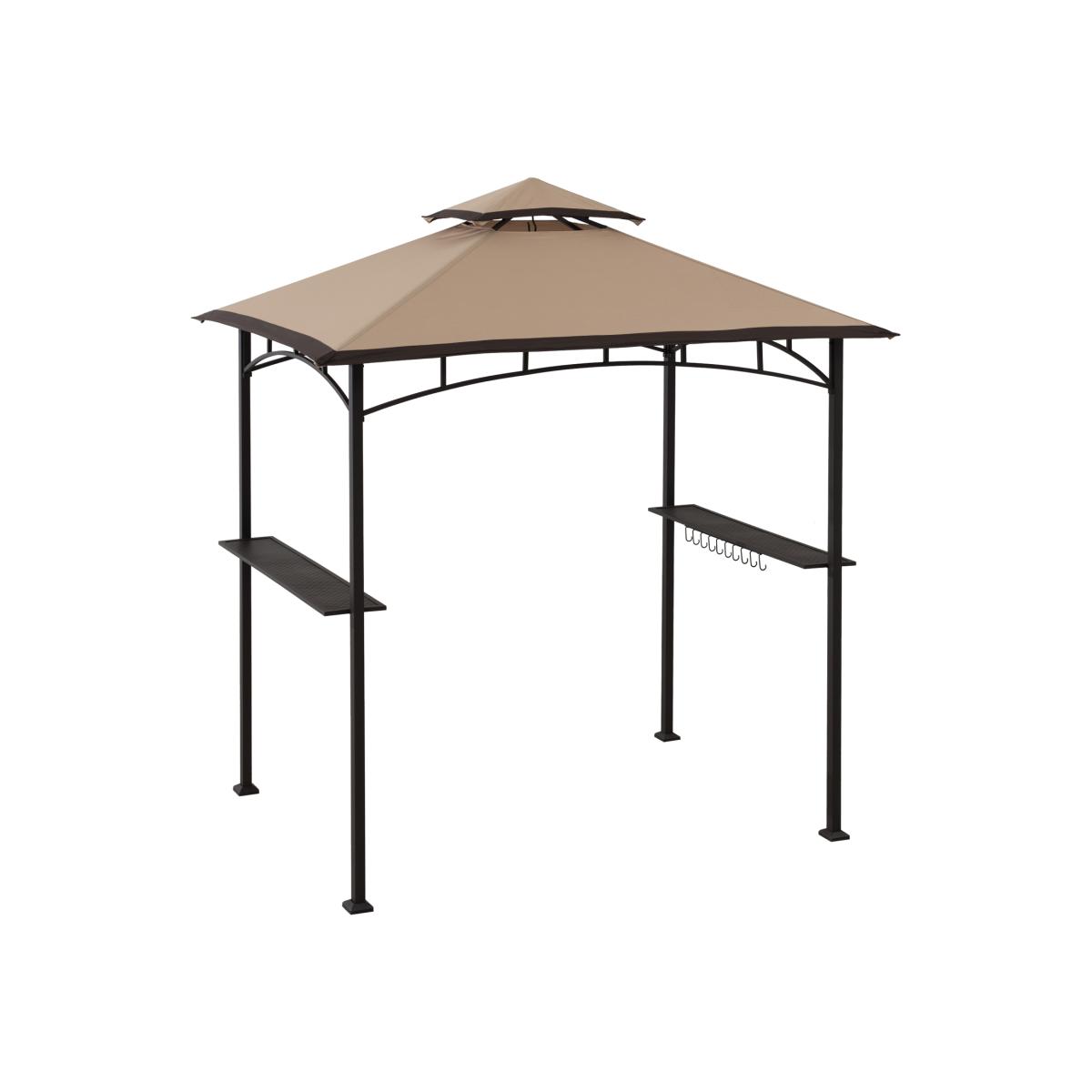 This barbecue pavilion was developed so that you can enjoy your barbecue time in the garden to the fullest. The 244x152cm rust resistant and powder coated steel construction supporting a weather resistant canopy not only protects your grill but also keeps you dry and cool while grilling. Never again risk standing in the rain while flipping your burger. The 2-tier roof helps vent smoke. Practical accessories such as hooks for grilling utensils and built-in shelves make it functional and attractive. With the easy-to-understand assembly instructions, you can enjoy a perfectly grilled steak in no time at all.